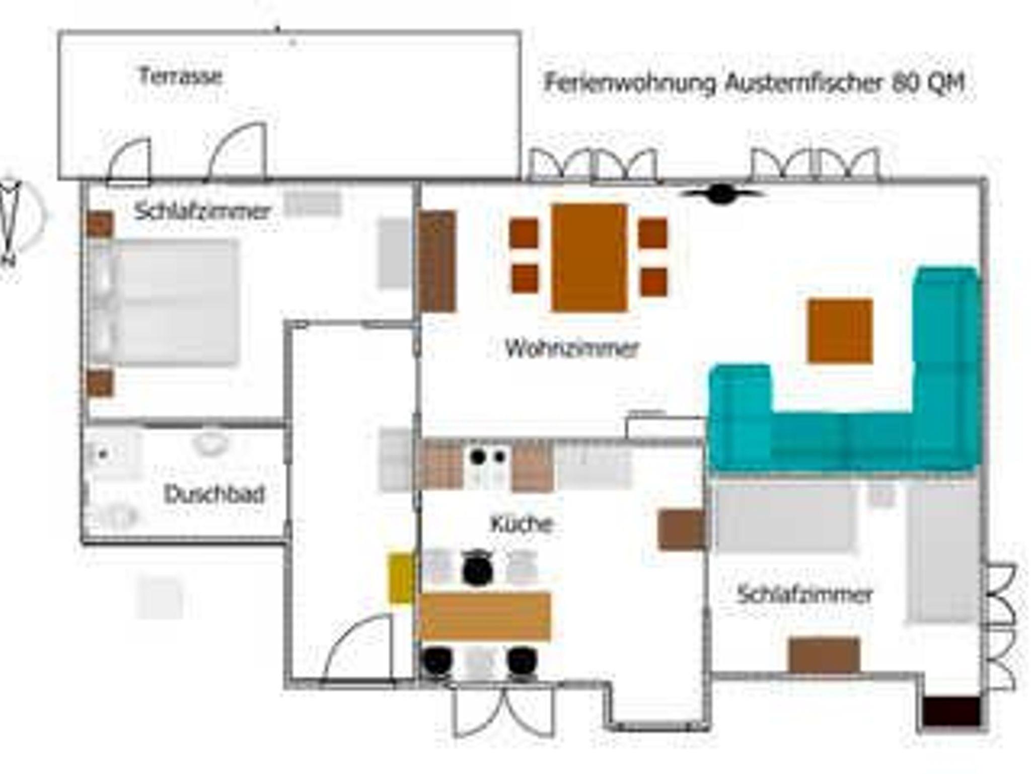 Die Ferienwohnung Austernfischer befindet sich im Erdgeschoss des Ferienhauses und hat einen separaten Eingang. Sie ist ideal für einen Aufenthalt für bis zu 4 Personen.