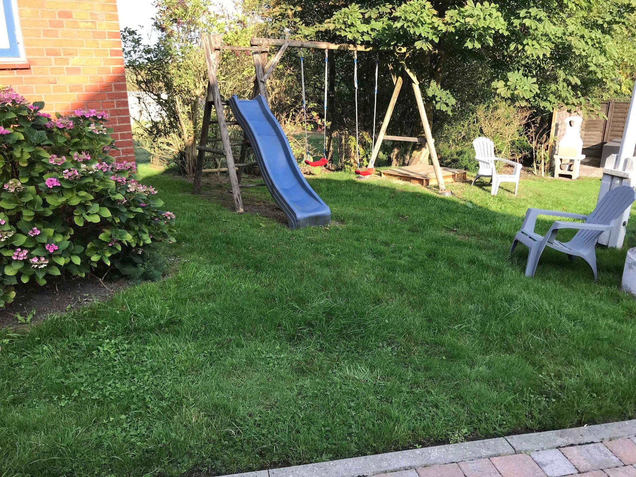 Die Ferienwohnung verfügt über einen eigenen, eingezäunten Garten mit Terrasse und Grillkamin.