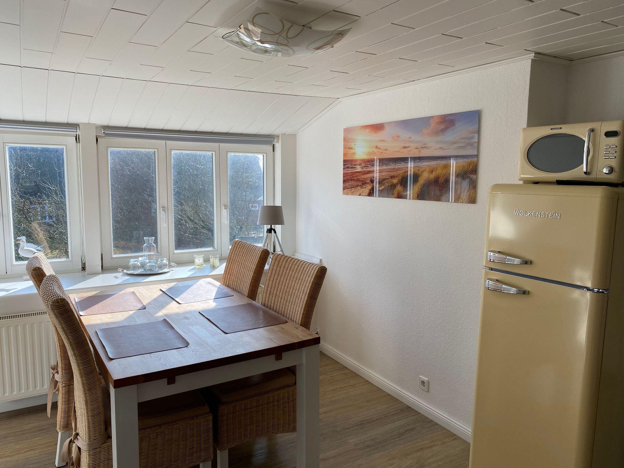 Die Ferienwohnung Strandkrabbe liegt im Obergeschoss des Ferienhauses und ist ideal für einen Aufenthalt für 2 Personen.
