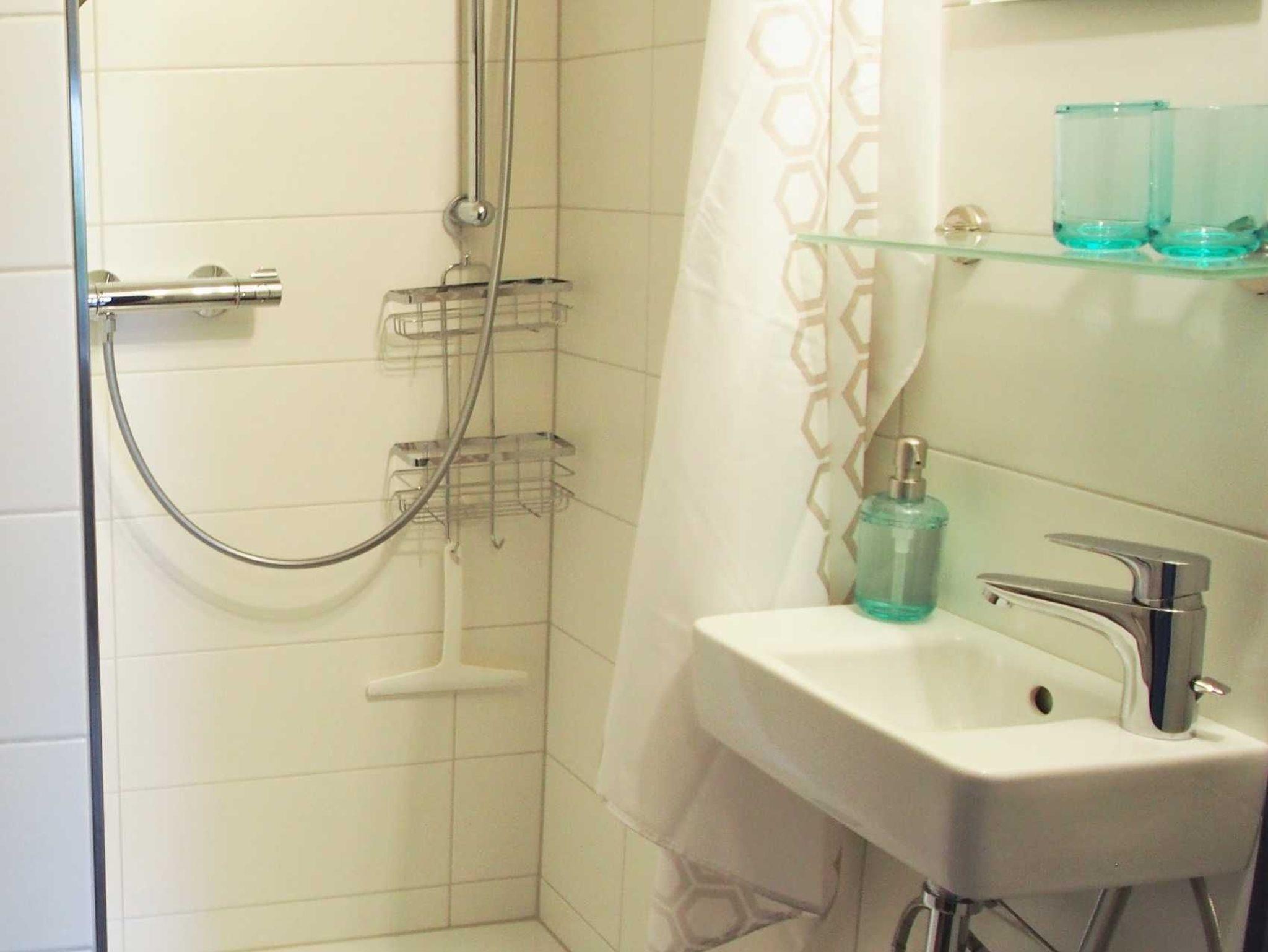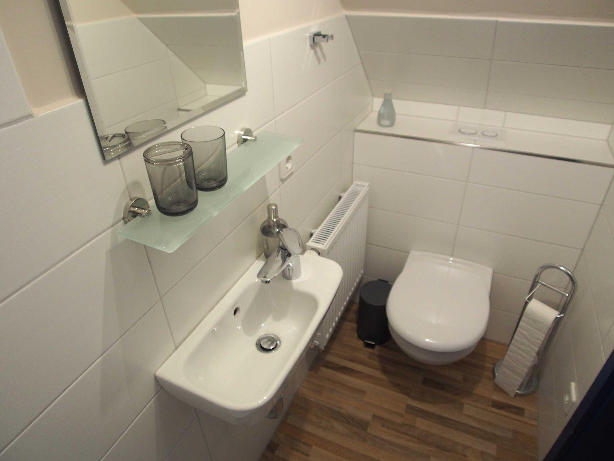 Sie verfügt über 1 Schlafzimmer mit Doppelbett (180 cm x 200 cm), 2 Duschbäder, einem Wohnraum mit Küchenzeile und ein gemütliches Wohnzimmer mit Smart TV. (Im Schlafzimmer ist ausreichend Platz für ein privates Reise-Babybett. ) Die Küche ist ausreichend mit Geschirr und Küchengeräten ausgestattet. Zur Kaffeezubereitung steht Ihnen eine Kaffee Filtermaschine und eine Senseo-Pad Maschine zur Verfügung.