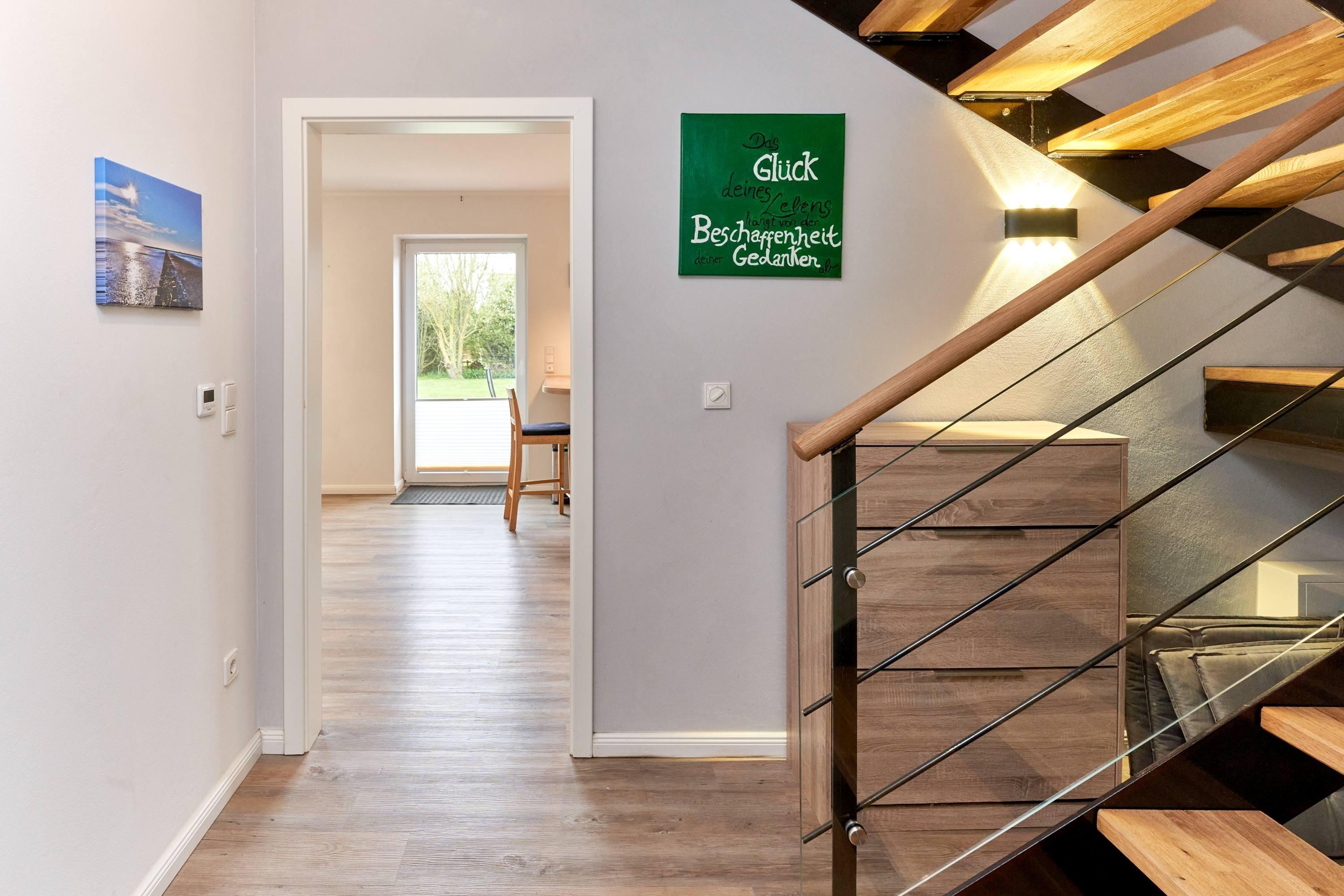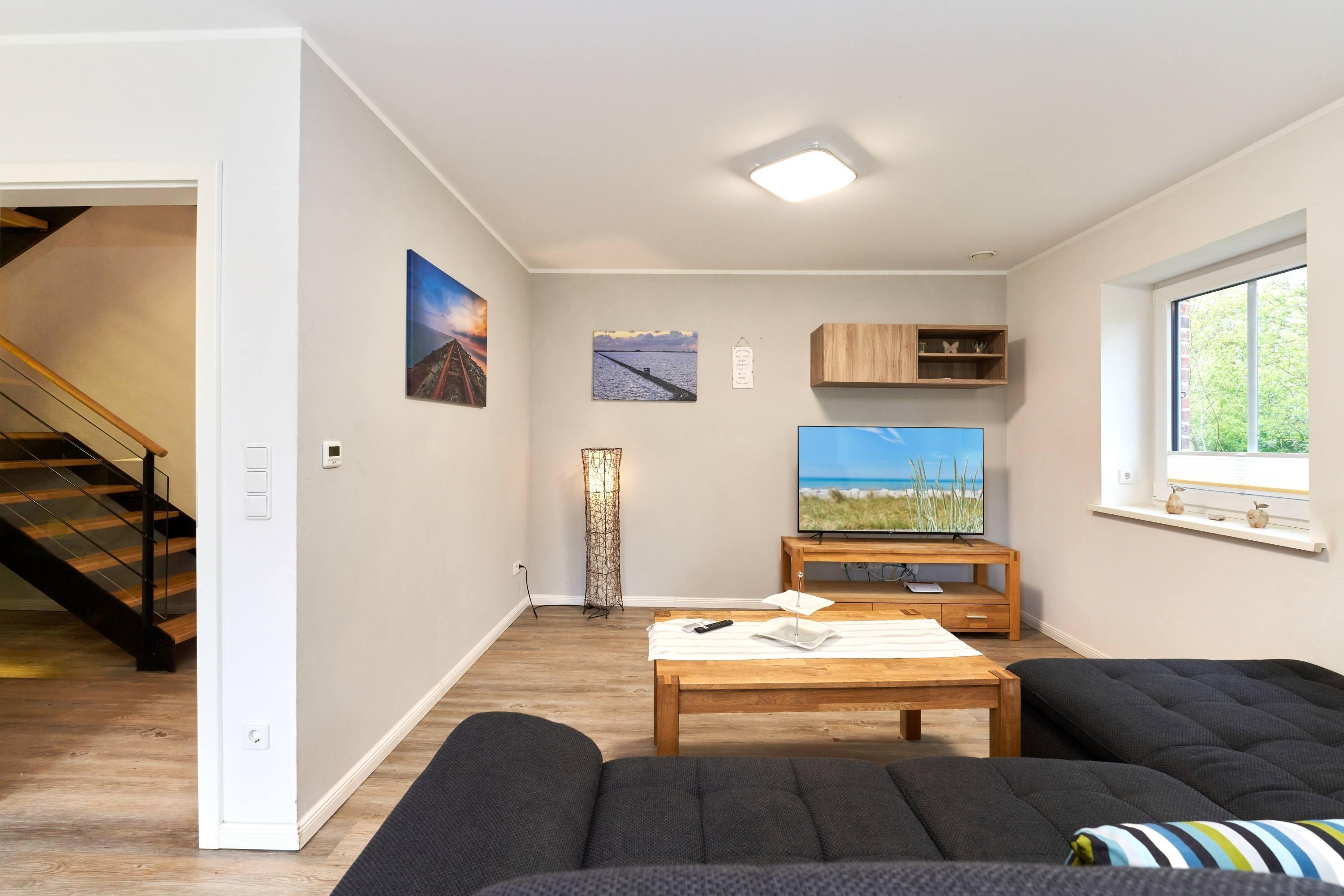 Die großzügige Ferienwohnung erstreckt sich über zwei Etagen und bietet mit ihrem modernen Komfort und gemütlichen Ambiente ausreichend Platz für bis zu fünf Personen.