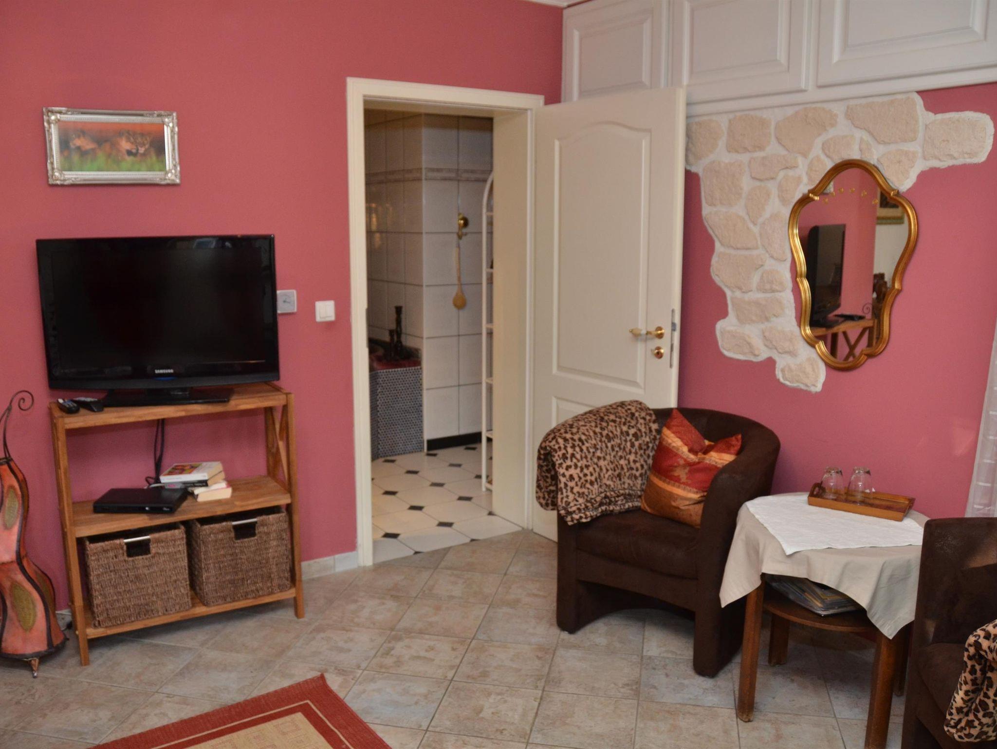 Ausstattung: Wohnung mit gut ausgestatteter Küche. Telefon, WiFi, Flachbildschirm-TV, Fußbodenheizung, Kamin (mit einem Korb Holz € 19), Außengrill.