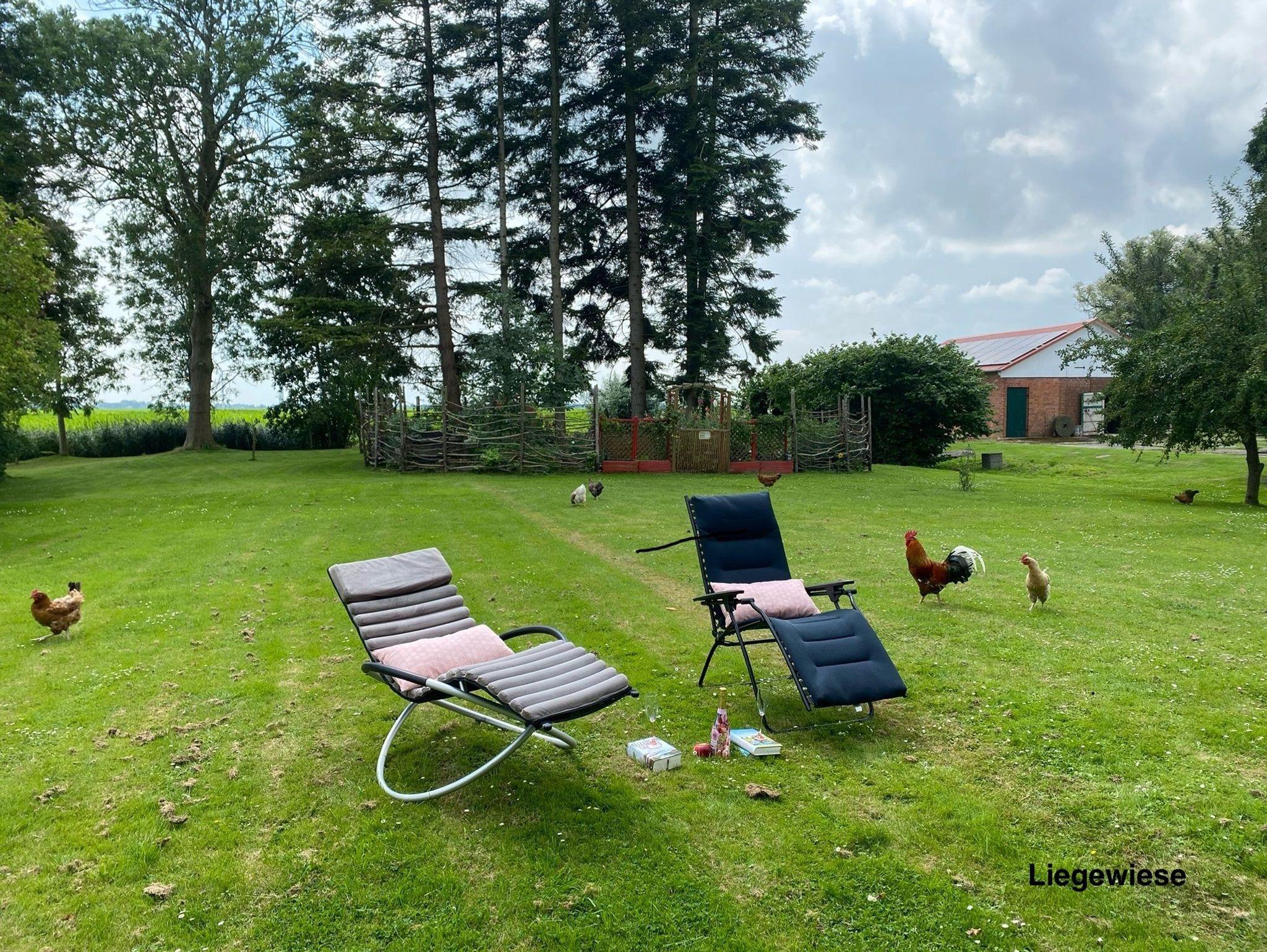 Die freilaufenden Hühner, Hahn und Katzen vervollständigen den dörflichen Charakters des Feriendomizils, sind aber auch der Grund dafür, dass Hunde auf dem Grundstück angeleint bleiben müssen.
