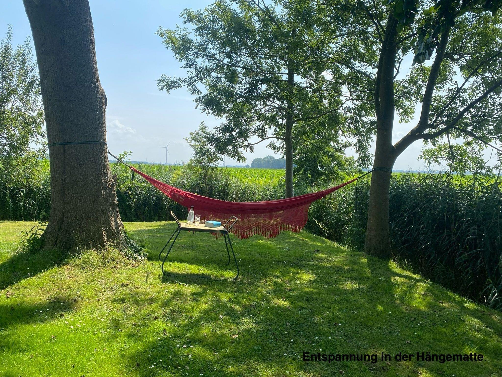 Im Garten stehen Ihnen mehrere Sitzplätze zum Verweilen, Strandkorb, Hängematte, Grill und viel Platz für Spiel und Spaß zur Verfügung.