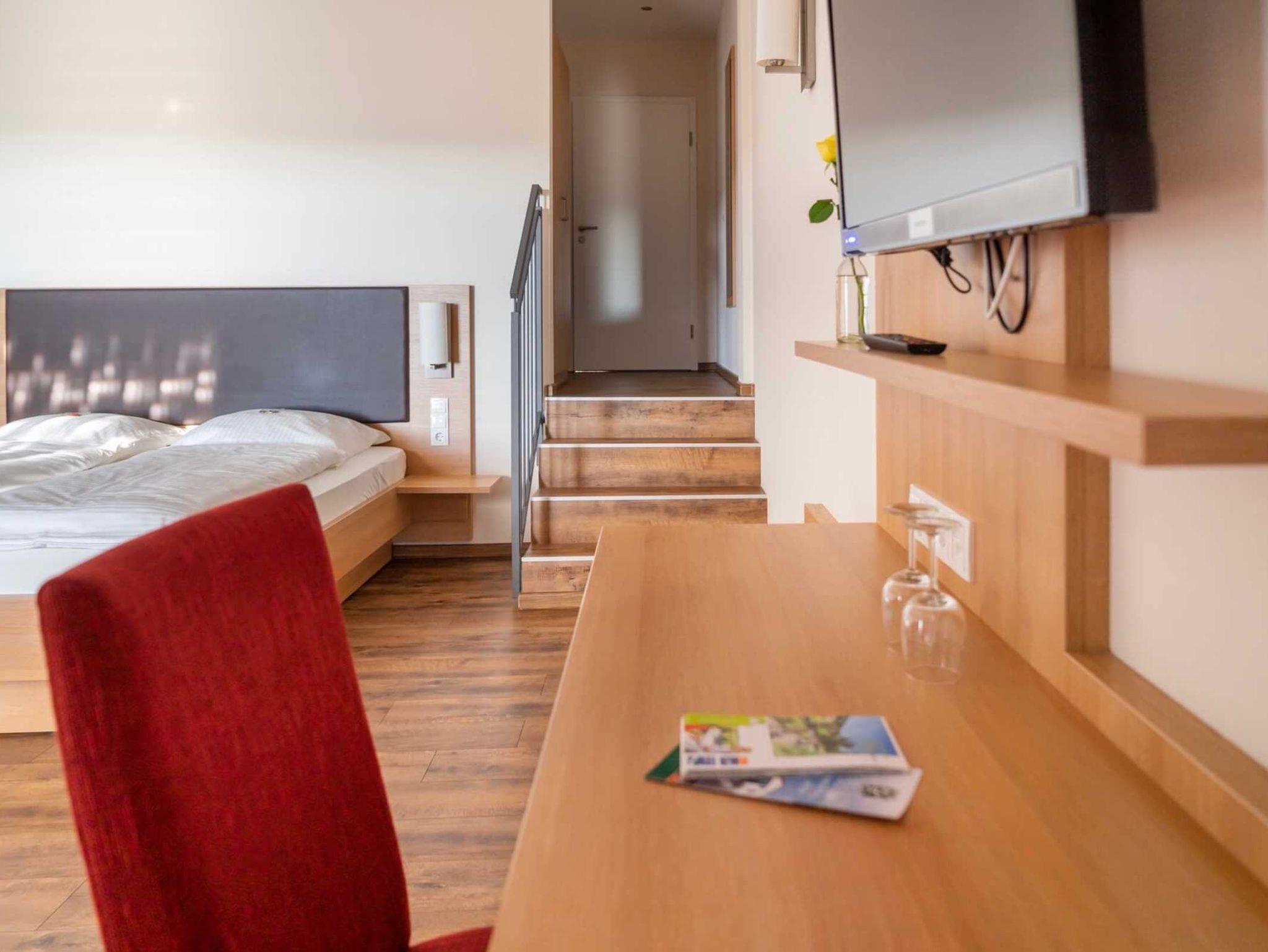 Die neuen und modern eingerichteten Gästezimmer sind alle nach Süden ausgerichtet. Große Panoramafenster bieten Ihnen einen herrlichen Ausblick.