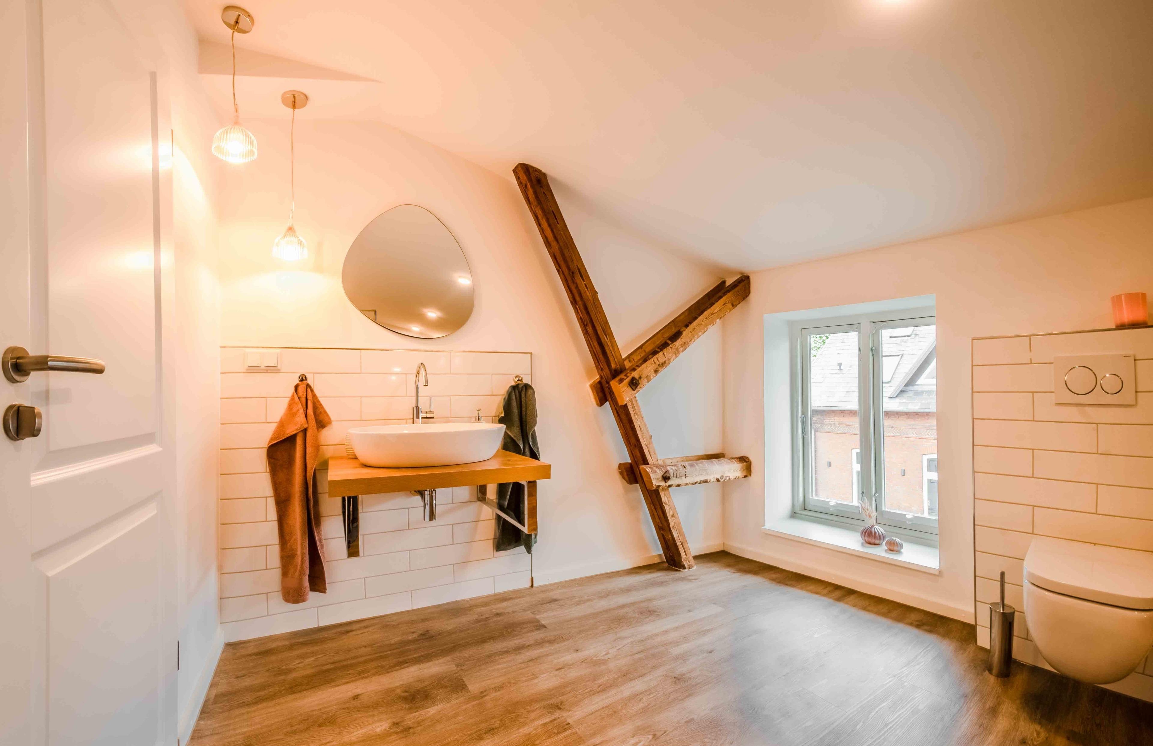 Im Sommer 2017 haben wir diesen Hof gekauft. Nach einer langen Planungsphase Begann der Umbau des Wohnhauses und konnte 2019 abgeschlossen werden. 2020 begannen wir mit dem Umbau des Schweinestalls zum Pferdestall. Heute beherbergt dieser 5 Boxen und Paddocks. Parallel dazu haben wir das Obergeschoss zu unseren schönen Ferienwohnungen ausgebaut.
