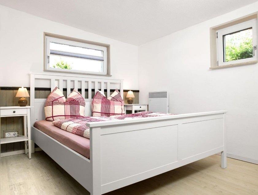 Das gemütliche Schlafzimmer ist mit einem Doppelbett (durchgehende Matratze) und einem Kleiderschrank möbliert. Für einen erholsamen Schlaf sorgt eine Verdunklungsmöglichkeit. Für eine dritte Person steht das ausziehbare Schlafsofa im Wohnzimmer zur Verfügung.