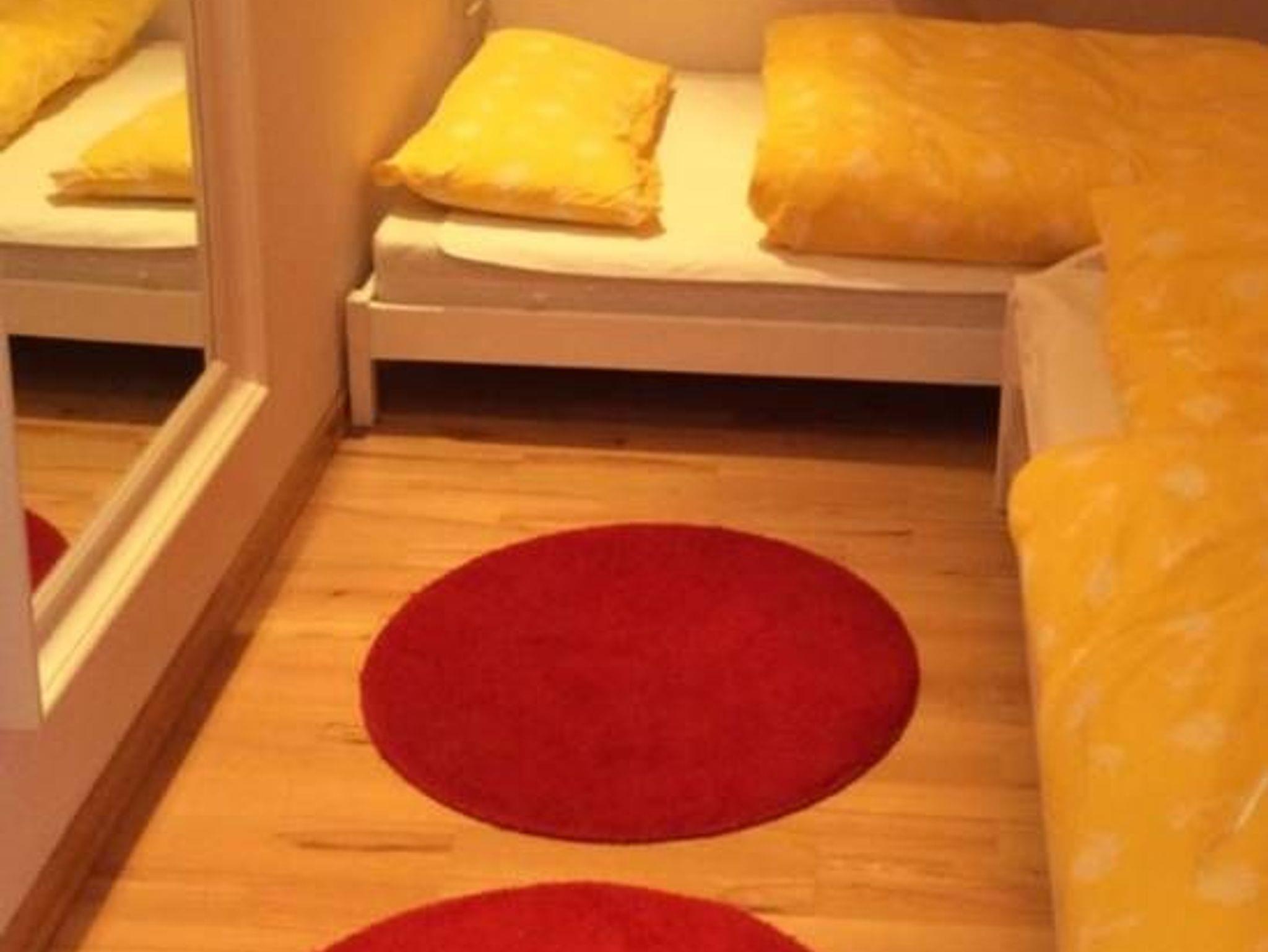 Raumaufteilung: 1 Schlafraum (1 Doppelbett), 1 Schlafraum (1 Einzelbett), 1 Schlafraum (2 Einzelbetten), 1 Wohnraum, 1 Wohnküche, 1 Badezimmer mit Dusche.