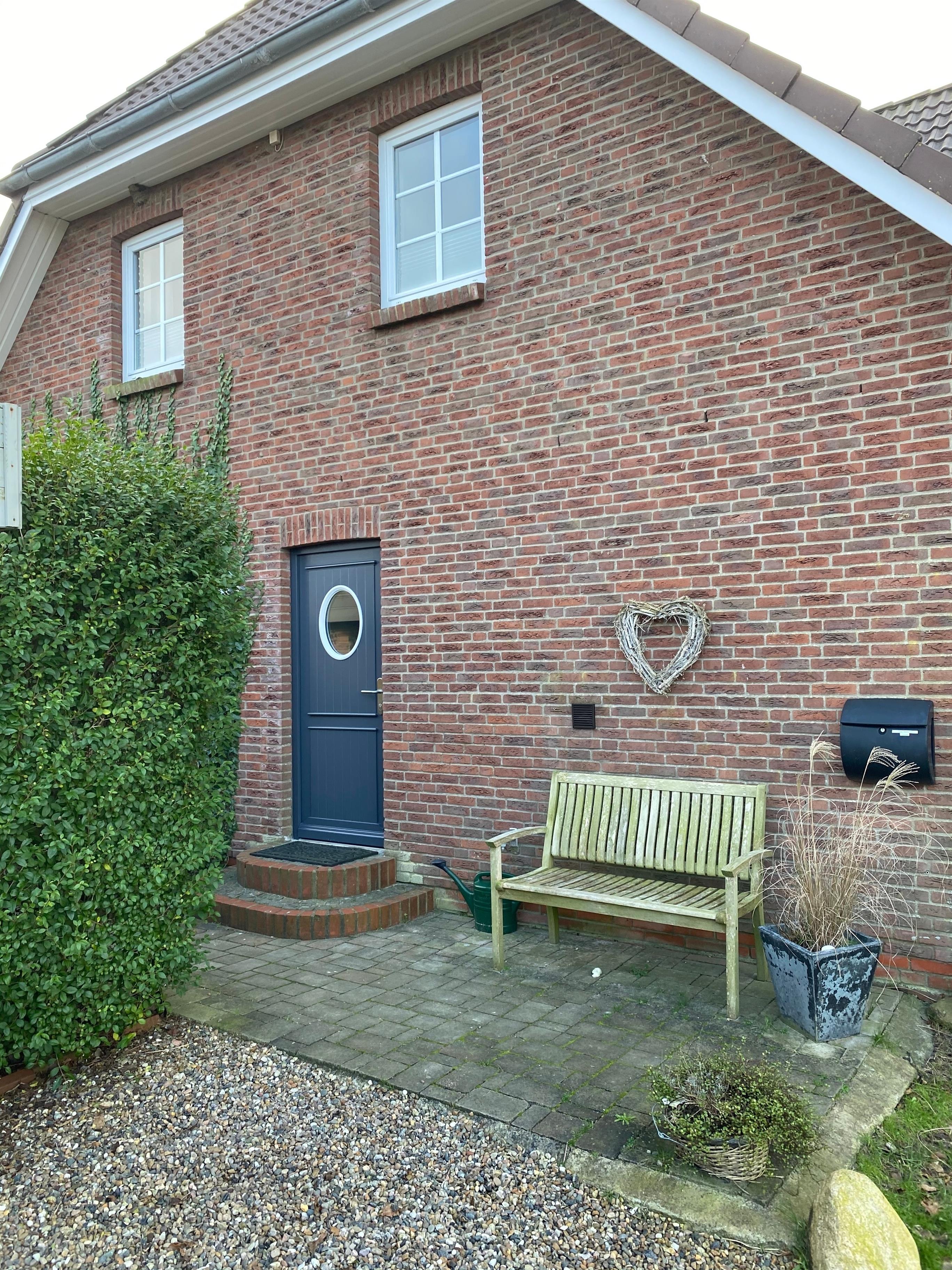 in Oevenum liegt am Ende einer kleinen Stichstraße mit freier Sicht auf eine grüne Wiese. Über zwei Etagen erwarten Sie große, helle Räume, eine Sonnenterrasse und ein schöner Garten. Von der großen Diele aus erreicht man im Erdgeschoss des Hauses die moderne, komplett eingerichtete Küche, das Wohnzimmer mit Flat-TV