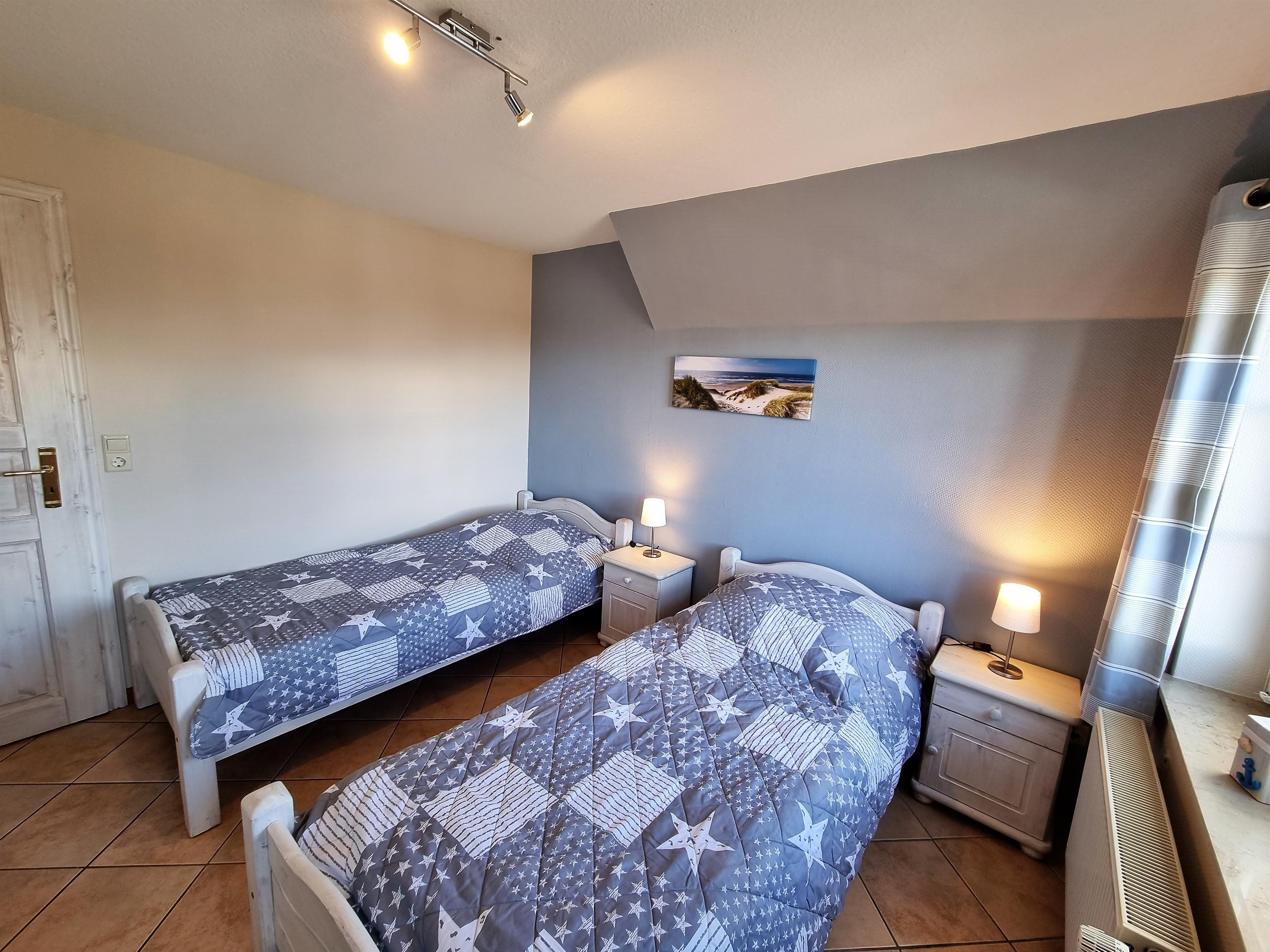 Das zweite Schlafzimmer verfügt über zwei Einzelbetten (je 0,90 × 2,00 m) sowie ebenfalls über einen Kleiderschrank.