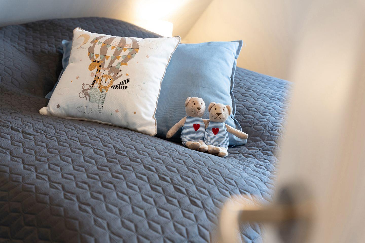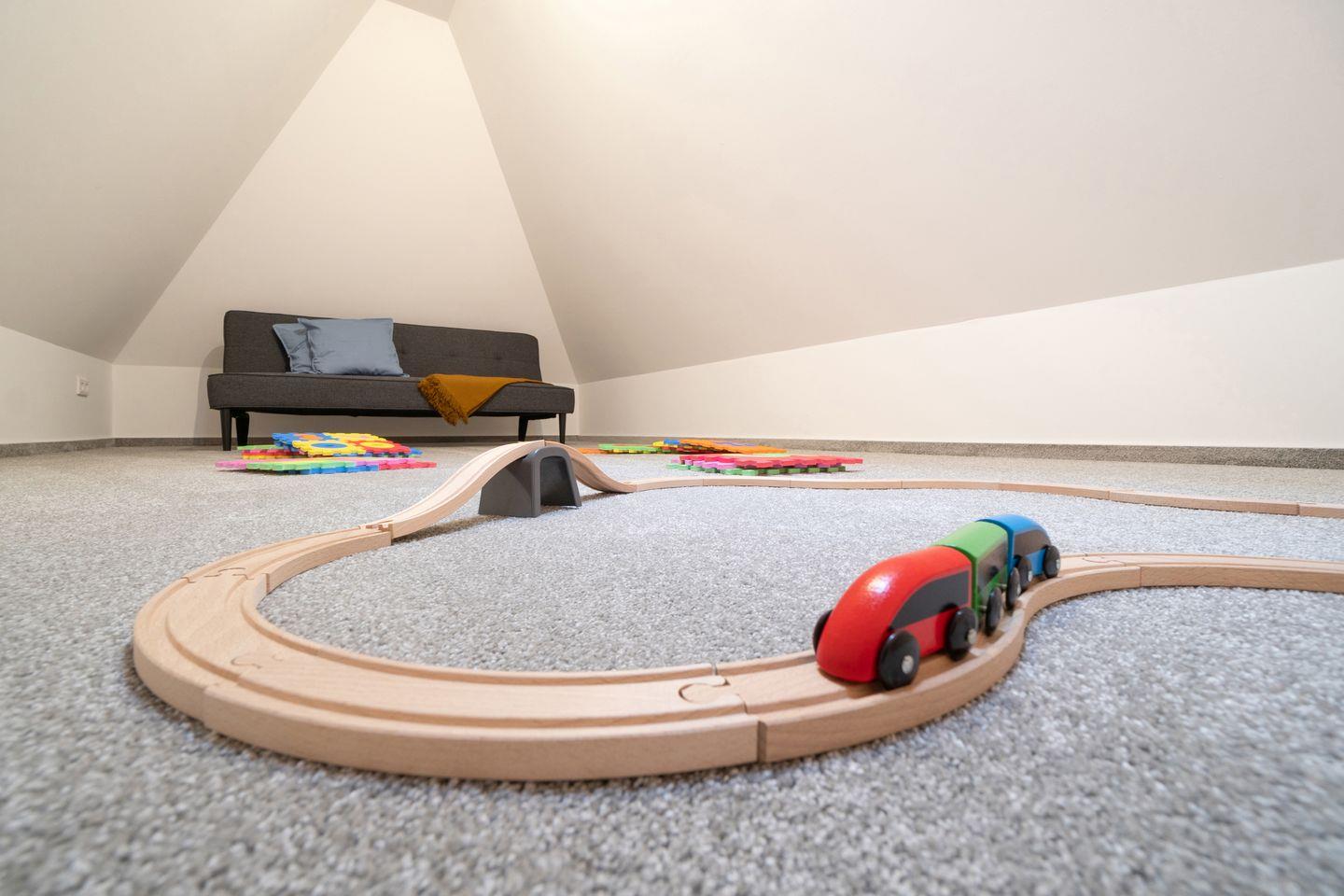 Die 3 Schlafzimmer sowie das zweite Duschbad sind im Obergeschoss gelegen. Von hier gelangen Sie auch in das Dachgeschoss mit dem Aufenthaltsraum und Yogamatte.