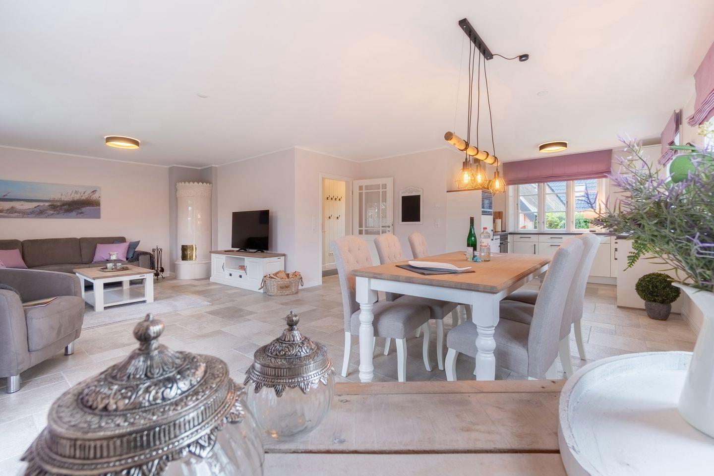 Die reetgedeckte Haushälfte 2 im Haus Inselurlaub verfügt über 3 Schlafzimmer und 2 Bäder und bietet somit komfortabel Platz für bis zu 6 Personen. Auch bis zu 2 Hunde sind herzlich willkommen.