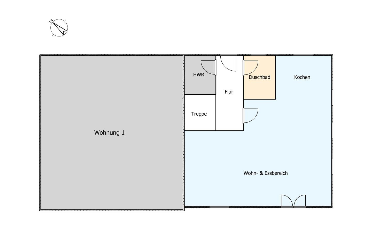 Im Erdgeschoss befindet sich der großzügige Wohn- und Essbereich mit offener Küche sowie eines der beiden Duschbäder.