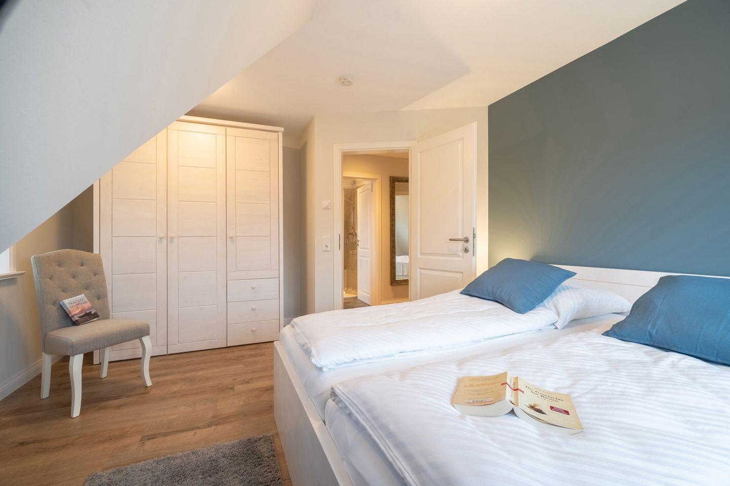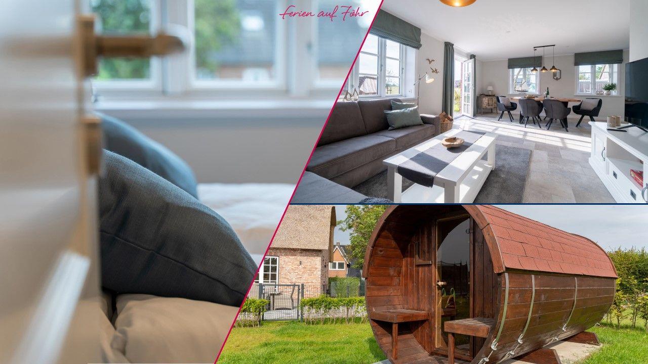Die reetgedeckte Haushälfte 1 im Haus Inselurlaub verfügt über 3 Schlafzimmer und 2 Bäder und bietet somit komfortabel Platz für bis zu 5 Personen. Auch bis zu 2 Hunde sind herzlich willkommen.