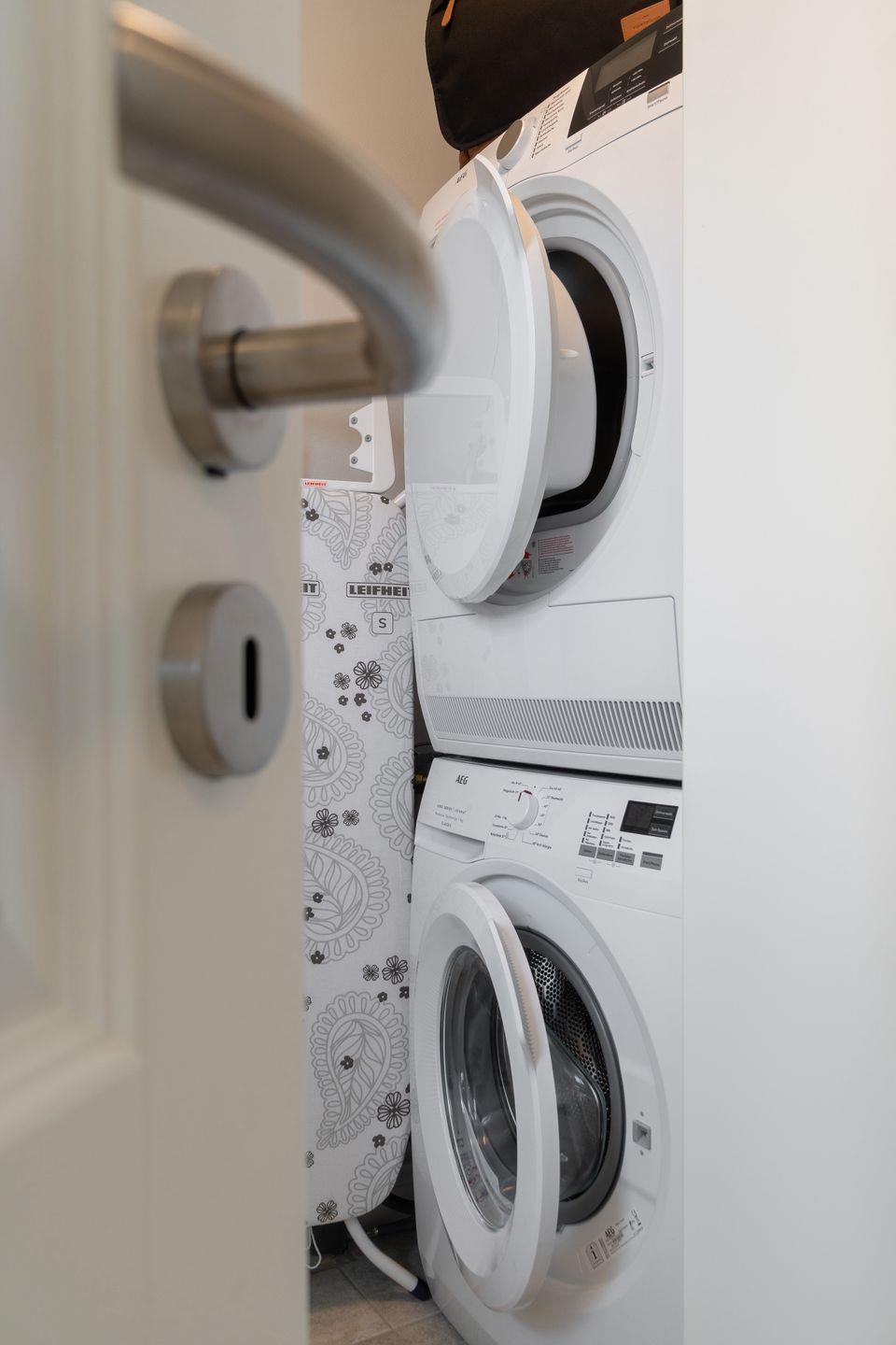 Ein zusätzlicher, großzügiger Garten mit Außensauna wird gemeinschaftlich genutzt. Außenduschen, ein Trampolin und ein Klettergerüst runden das Angebot ab. Zudem stehen beiden Haushälften mehrere PKW-Stellplätze sowie eine Ladesäule für E-Autos zur Verfügung.