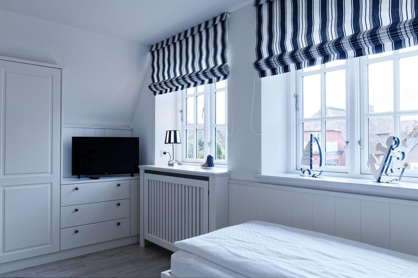 Das reetgedeckte Ferienhaus Dorftraum verfügt über 2 Schlafzimmer und 2 Bäder und bietet somit komfortabel Platz für bis zu 4 Personen zuzüglich einer Kleinkinderaufbettung.