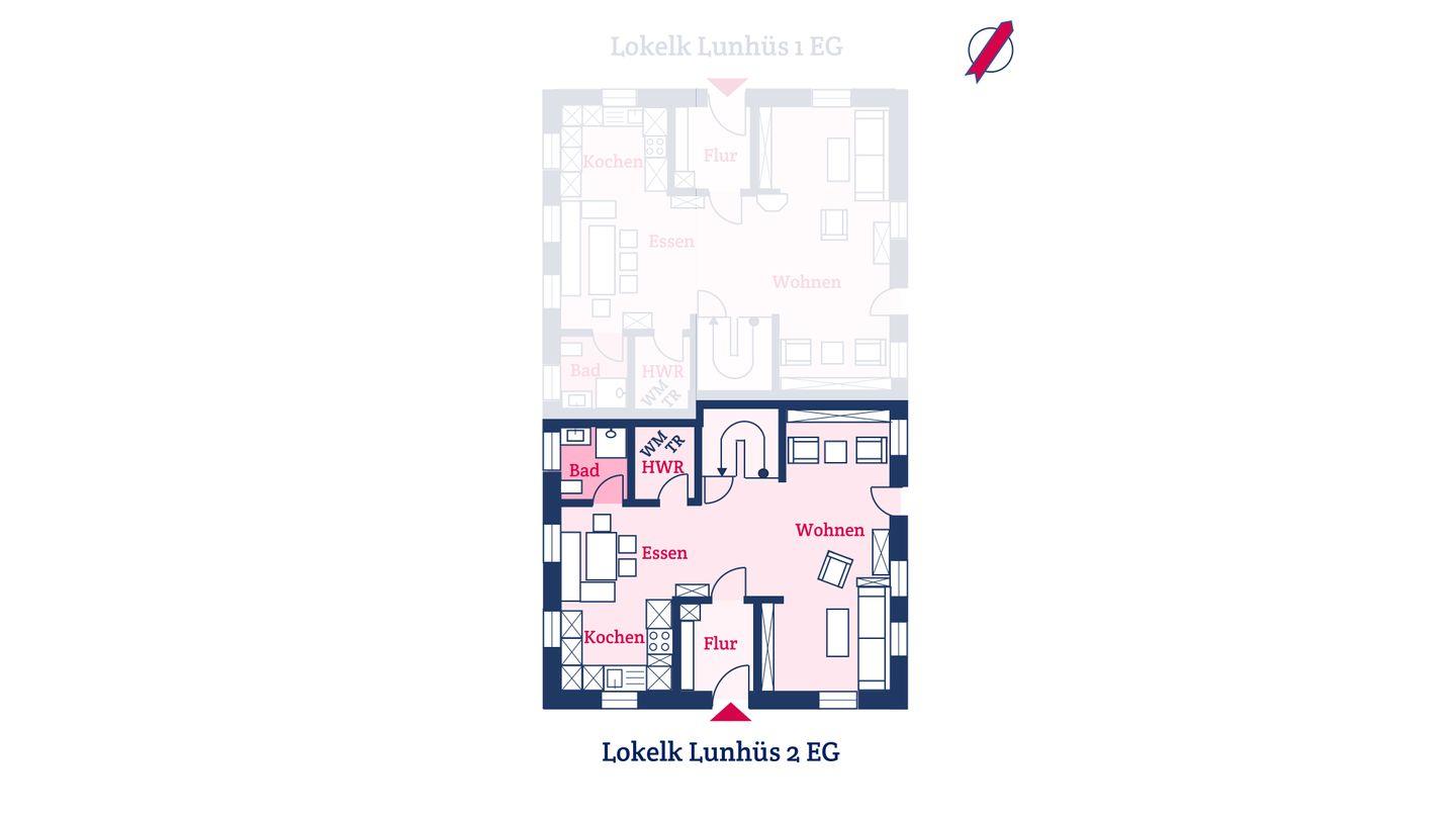 Der exklusive Hausteil 2 im Lokelk Lunhüs wurde in den Jahren 2023/2024 aufwendig renoviert und saniert und verfügt über 3 Schlafzimmer und 2 Bäder und bietet somit komfortabel Platz für bis zu 6 Personen zuzüglich einer Kleinkinderaufbettung. Auch ein Hund ist hier herzlich willkommen.