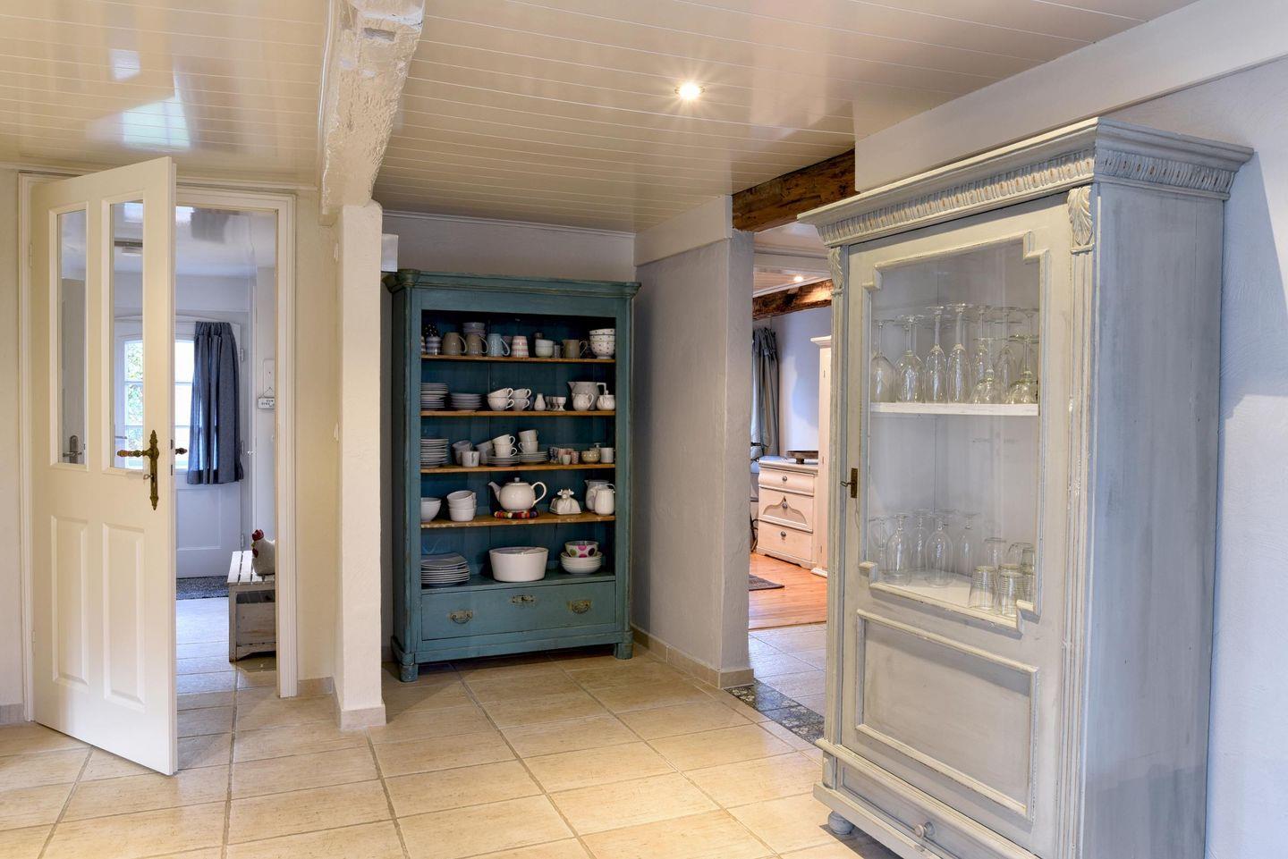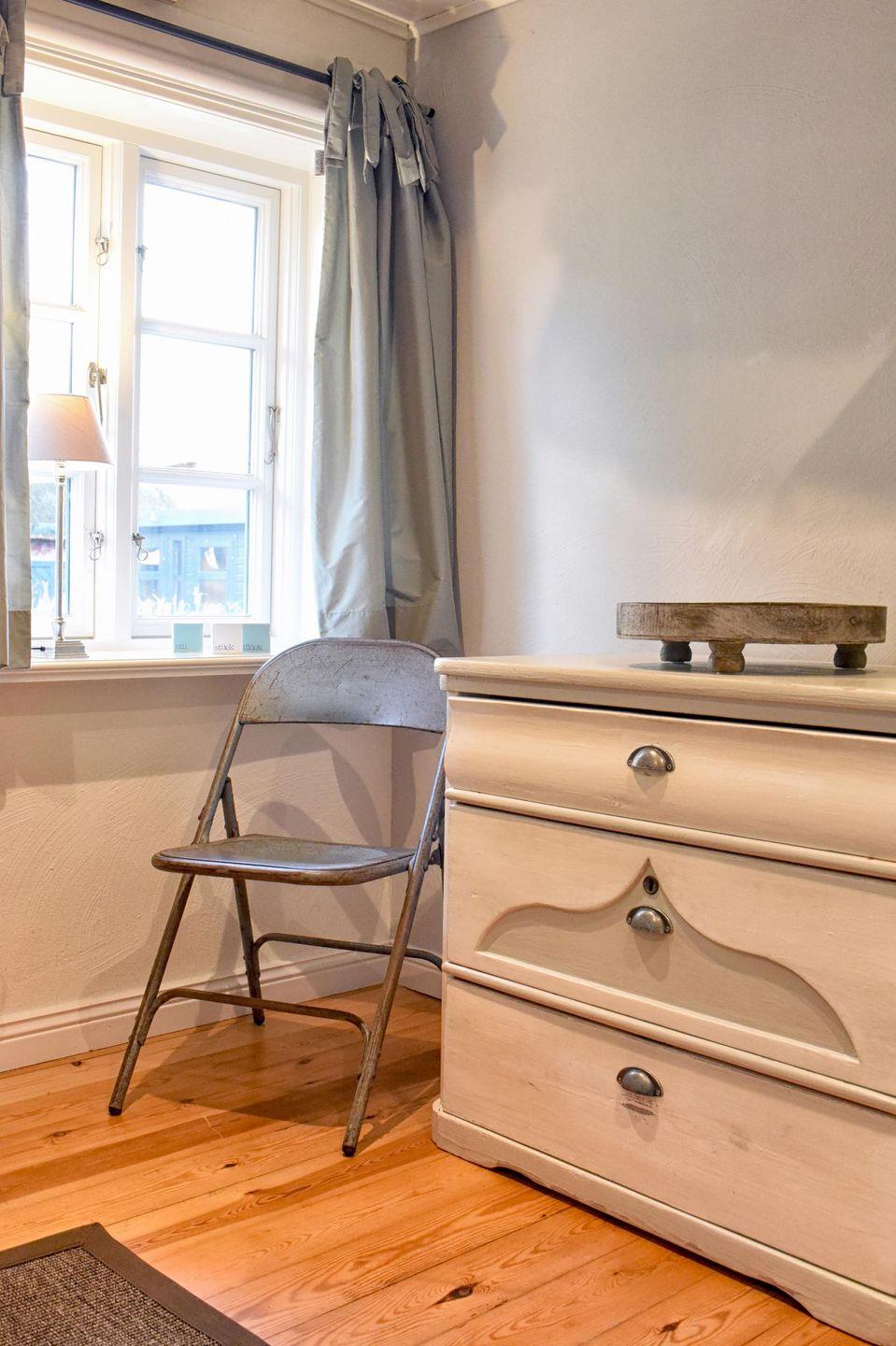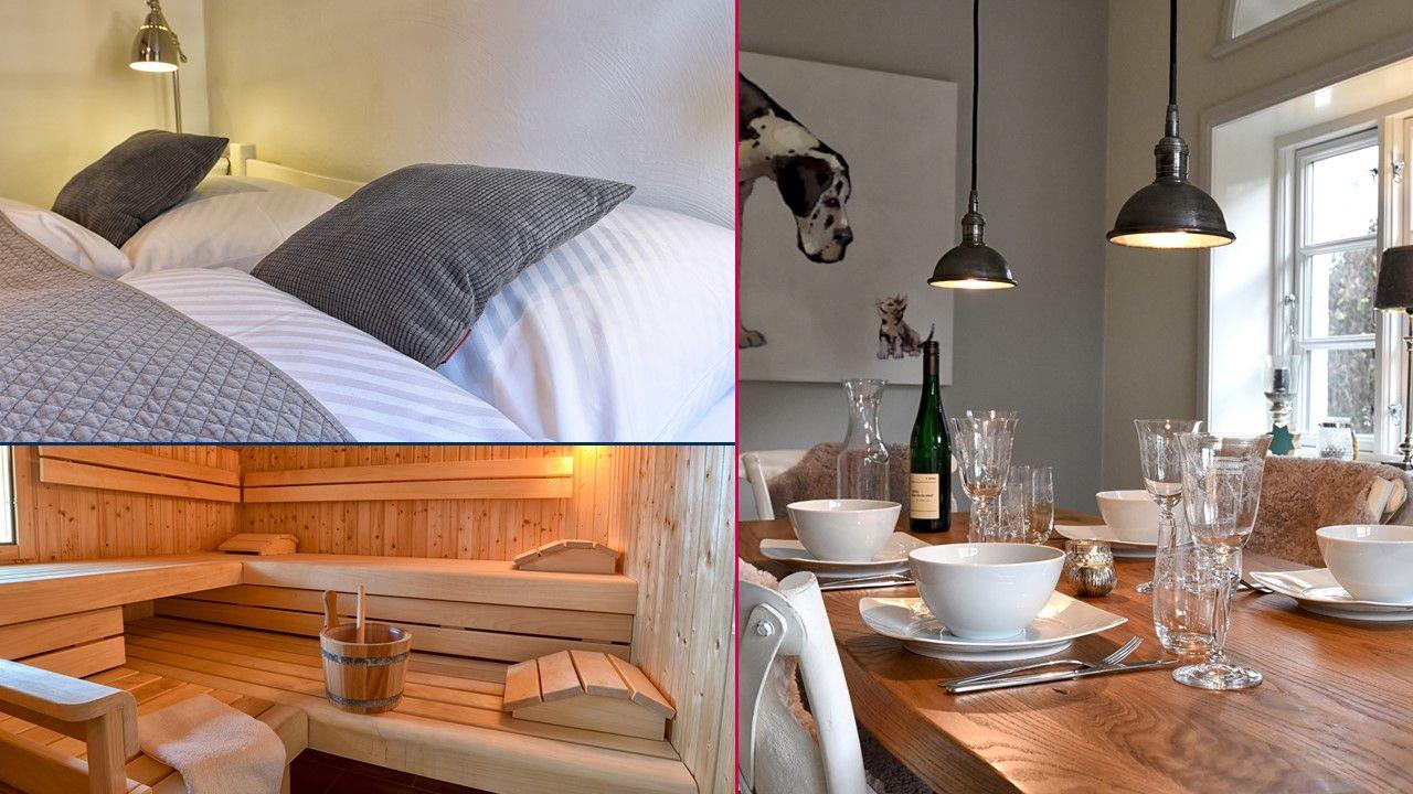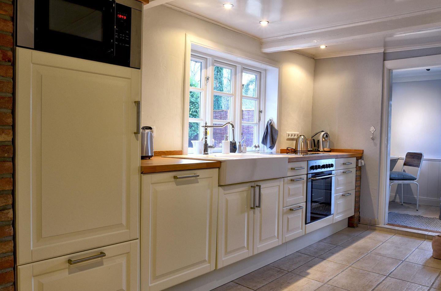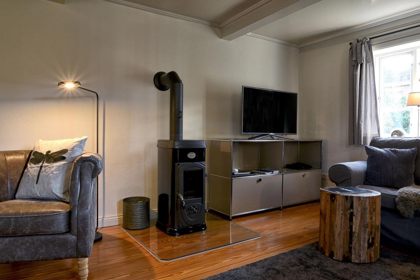 Für Feriengäste, die sich vom Alltag erholen, aber auch einmal arbeiten möchten, ist die „Kleine Flucht“ der optimale Rückzugsort. Wunderschön gelegen in einer kleinen Dorfstraße mit Apfelbaumgarten und ausreichend Platz auf der ebenerdigen Wohnfläche bietet das Haus Platz für bis zu zwei Personen. Das Haus erstreckt sich über 90 m². Die voll ausgestattete Küche wird Sie begeistern. Dort finden Sie alles, was das Herz begehrt: von einem Milchaufschäumer bis hin zu einem Waffeleisen, verschiedenen Backformen und diversem Geschirr. Der angrenzende, lichtdurchflutete Essbereich führt direkt zur Terrasse und in den schönen Garten. Das Ferienhaus "Kleine Flucht" verfügt über ein eigenes Lese- bzw. Arbeitszimmer mit einem bequemen Sessel und einem zusätzlichen Schreibtisch. Das Schlafzimmer ist mit einem gemütlichen Doppelbett ausgestattet. Im Duschbad befindet sich eine Sauna, in der Sie sich nach einem windigen Tag entspannen können. Auf gemütlichen Sitzmöbeln im Wohnzimmer findet man Platz zum Lesen, Spielen, Fernsehen und ein kleiner Guss-Ofen wärmt Sie an kalten Tagen. Die "Kleine Flucht" bietet ein WLAN-Netz mit einer Bandbreite von 25.000 MBit/s - ideal, um die eigenen Lieblingsfilme und -serien auch im Urlaub zu streamen!