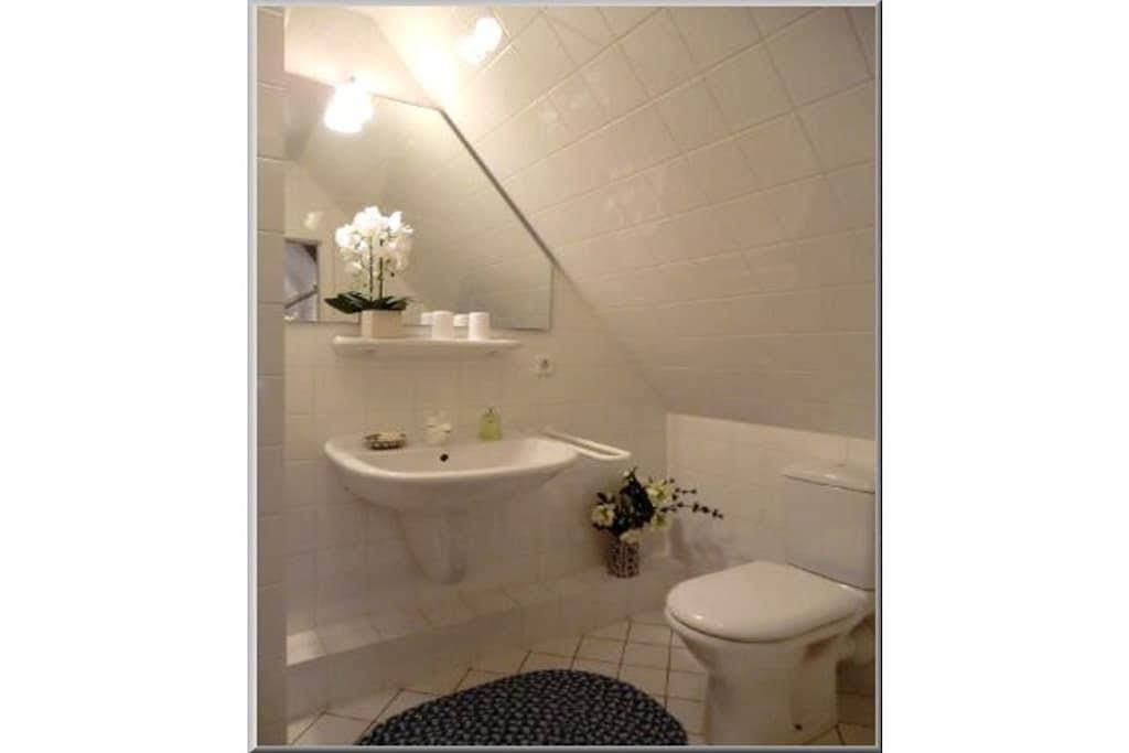 Dette smukke hus med sine eksklusive faciliteter tilbyder rigelig plads til op til 3 personer (kun ikke-rygere!) på cirka 90 m². Stueetage: Entré med garderobe, rummelig stue og spisestue med et moderne køkkenområde (inklusive en Nespresso-maskine) og en historisk kakkelovn (ikke i brug i øjeblikket!), entré med adgang til haven, trappe til øverste etage, brusebad/toilet, adgang til bryggers med opbevaringsplads til cykler osv. Øverste etage: Entré, stort soveværelse med dobbeltseng og skrivebord i kvistområdet, plus eget toilet, andet soveværelse også med dobbeltseng.