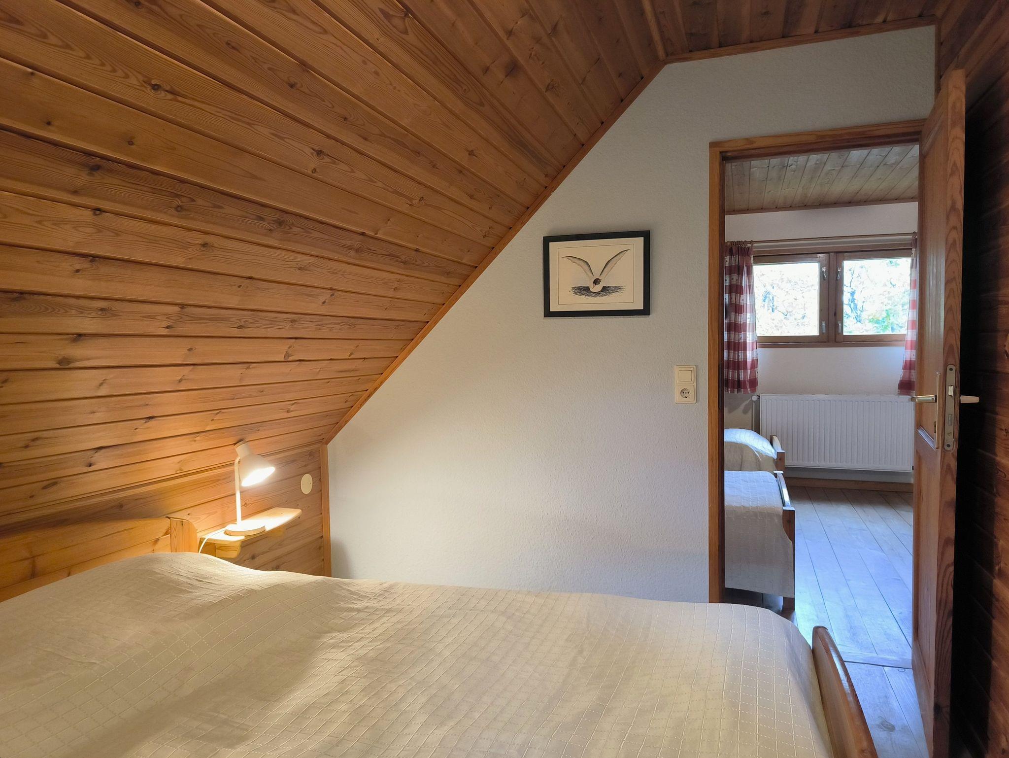 Die Schlafzimmer liegen im Obergeschoss: das Zimmer mit zwei Einzelbetten ist ein Durchgangszimmer, die anderen beiden Schlafzimmer sind jeweils mit einem Doppelbett ausgestattet. Am Küchentisch, in der Sofaecke oder draußen auf der Terrasse kann man essen, spielen, lesen und die gemeinsame Urlaubszeit genießen.