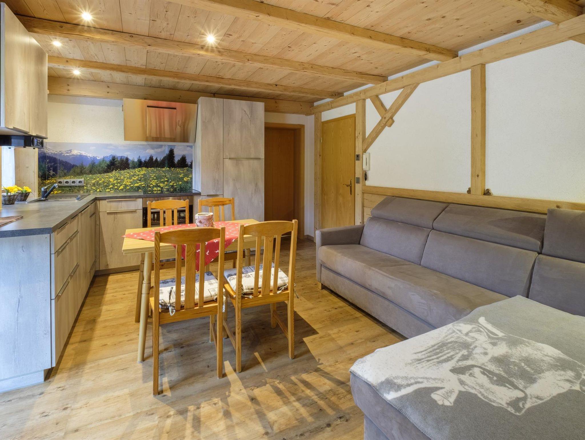 Unsere Ferienwohnung Nr. 1 mit 40 qm Grösse ist im alpenländischen Stil, mit viel Holz und sehr gemütlich ausgestattet.