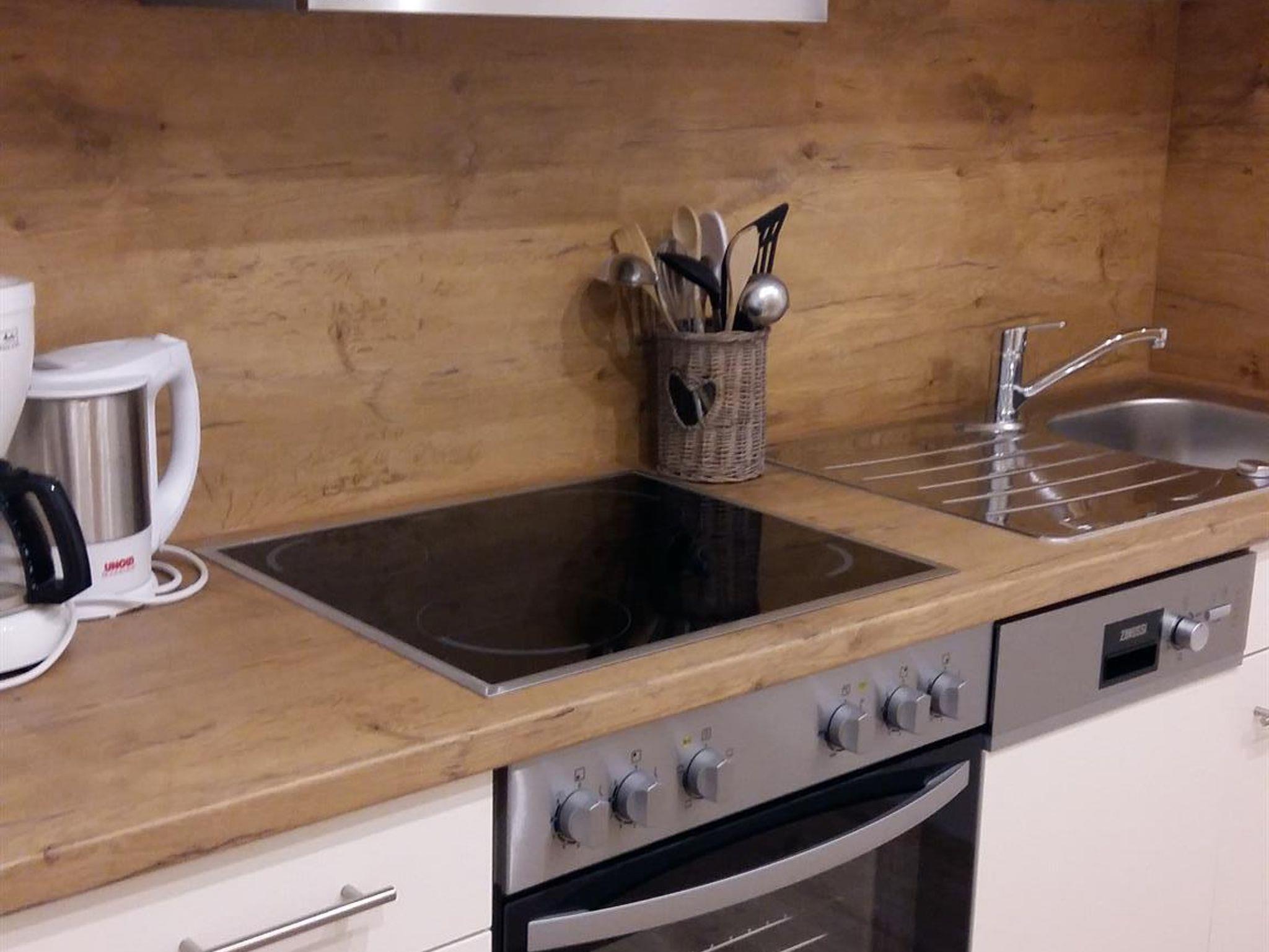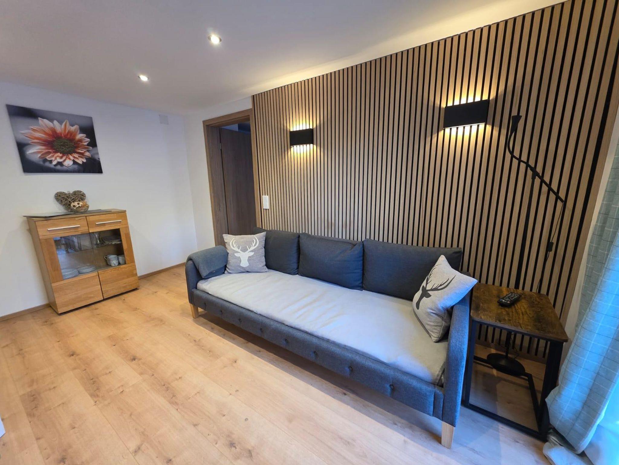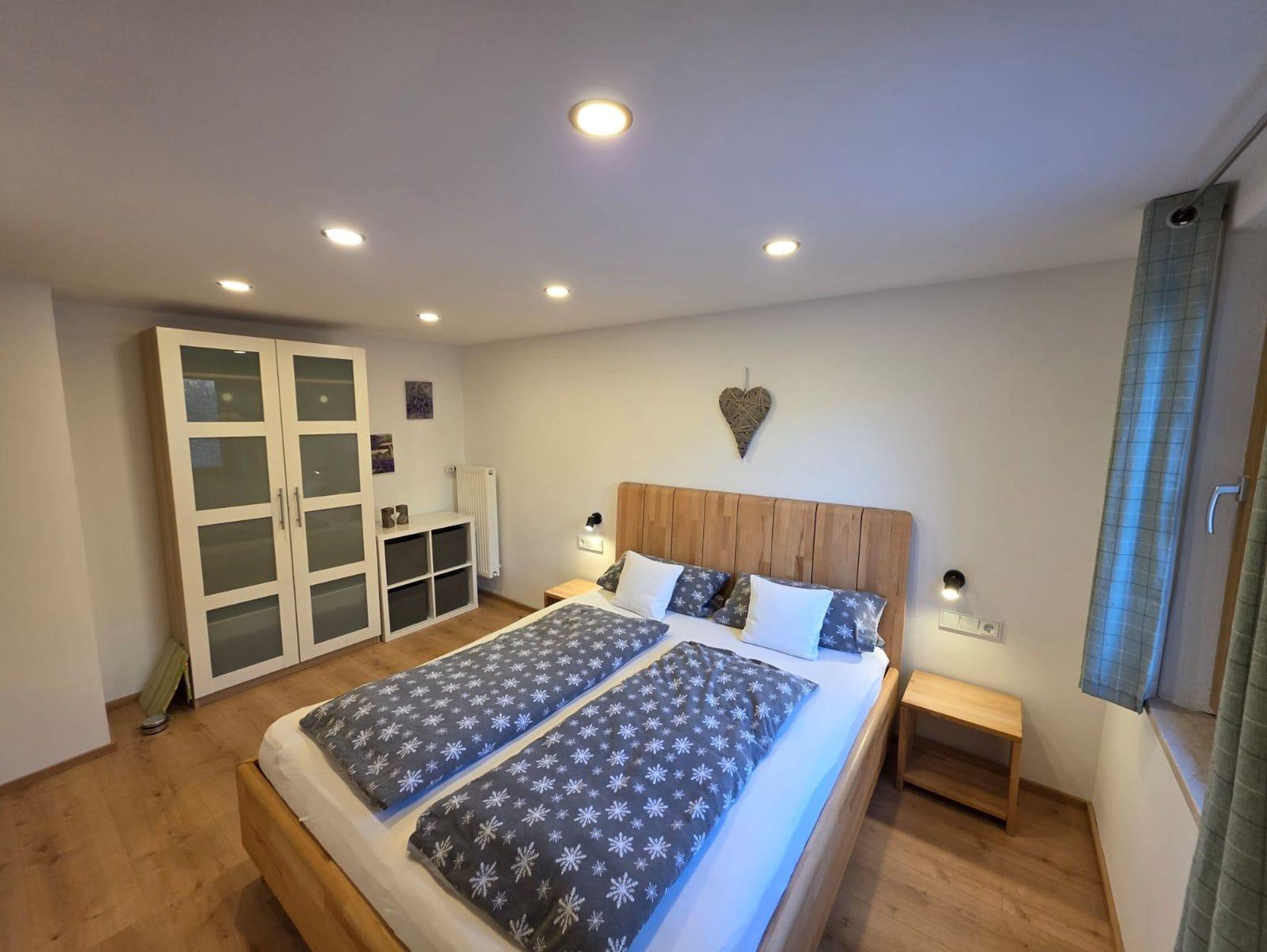 Diese bietet zwar keine Bergblick, dafür ist man hier vollkommen ungestört. Eingerichtet ist die Wohnung mit hochwertigen Holzmöbeln im alpenländlichen Stil.