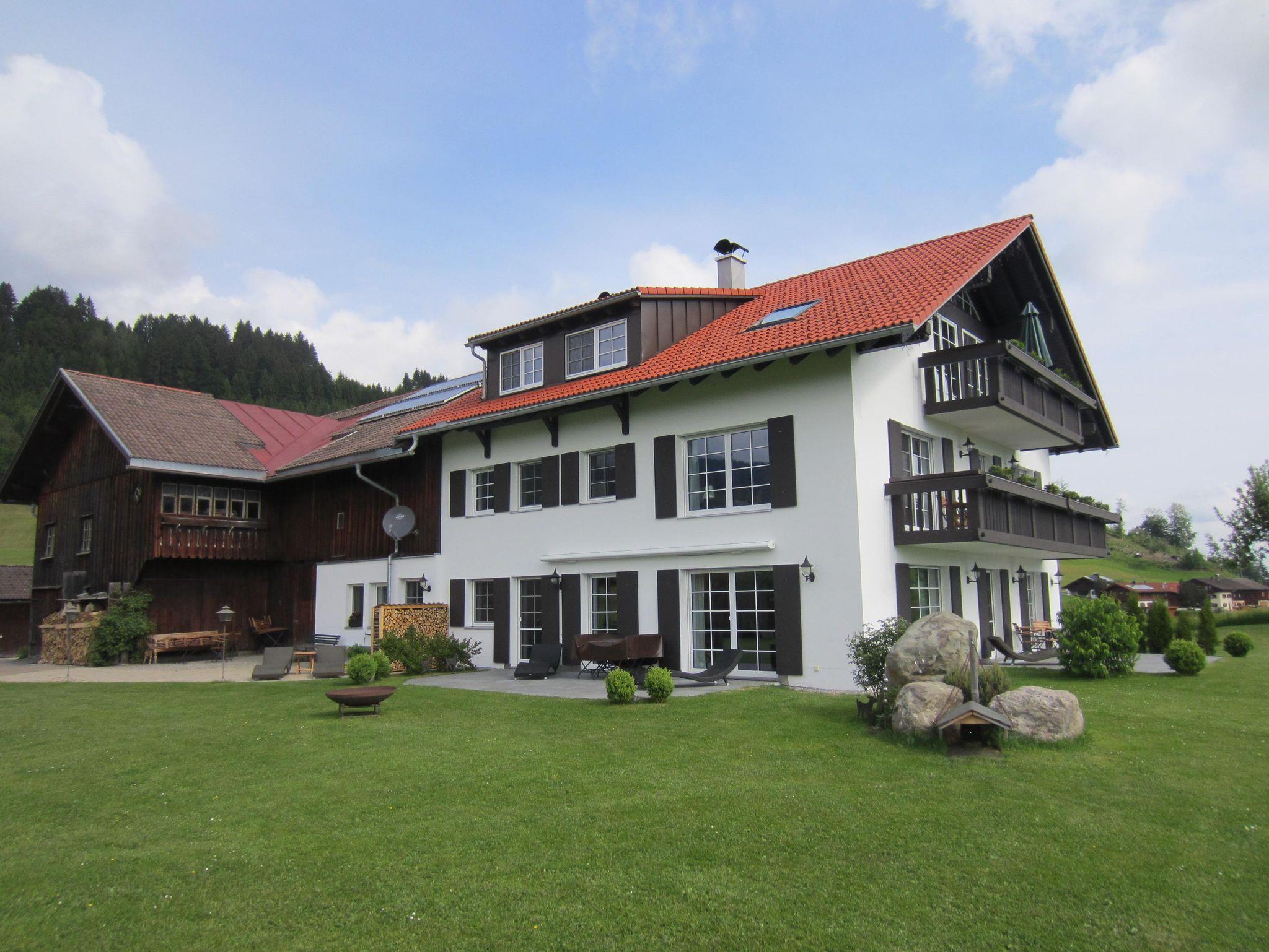 Das Fünf-Sterne-Ferienhaus AlpenLodge Allgäu mit seinen drei großzügigen Ferienappartements liegt in Hüttenberg, einem idyllischen Ortsteil von Ofterschwang in einer Höhe von ca. 860 m, direkt an den Ausläufen der Allgäuer Alpen. Das vollständig neu aufgebaute Bauernhaus im Allgäuer Stil bettet sich auf einem Hochplateau ein - mit einem atemberaubenden Ausblick über das gesamte Illertal. Der riesige Garten mit seinen fünf Schatten-spendenden Apfelbäumen und der finnischen Grillhütte wird durch keinen Zaun begrenzt. Alles ist offen und benutzbar samt kleinem Spielplatz und Fußballplatz für die jungen Gäste.
