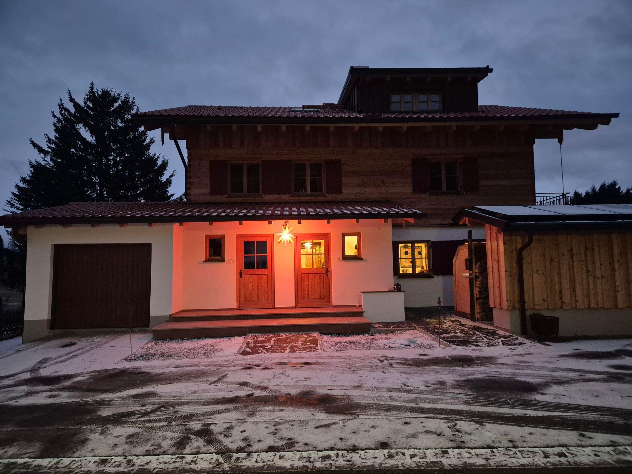 Der Garten des Hauses liegt am Riedbach und gegenüber befinden sich bewirtschaftete Felder und ein kleines Wäldchen. Im Sommer können die Kinder am Bach spielen und im Winter kann man bei guter Schneelage direkt aus dem Garten mit den Langlaufskiern starten. Der eigene Gartenzugang für die Ferienwohnung ist neben der Garage; der Garten kann in Teilen mitgenutzt werden (Liege- und Rasenflächen, Bach mit Wasserbausteinen, Terrasse am Bach). Fahrräder können gerne untergestellt werden.