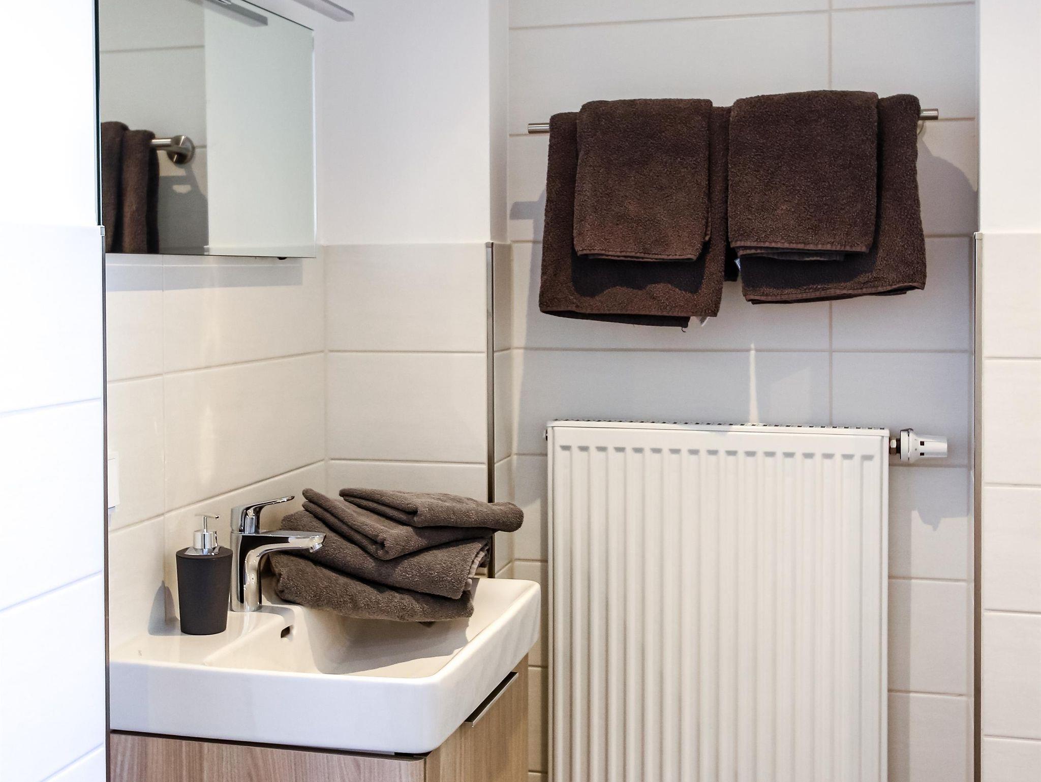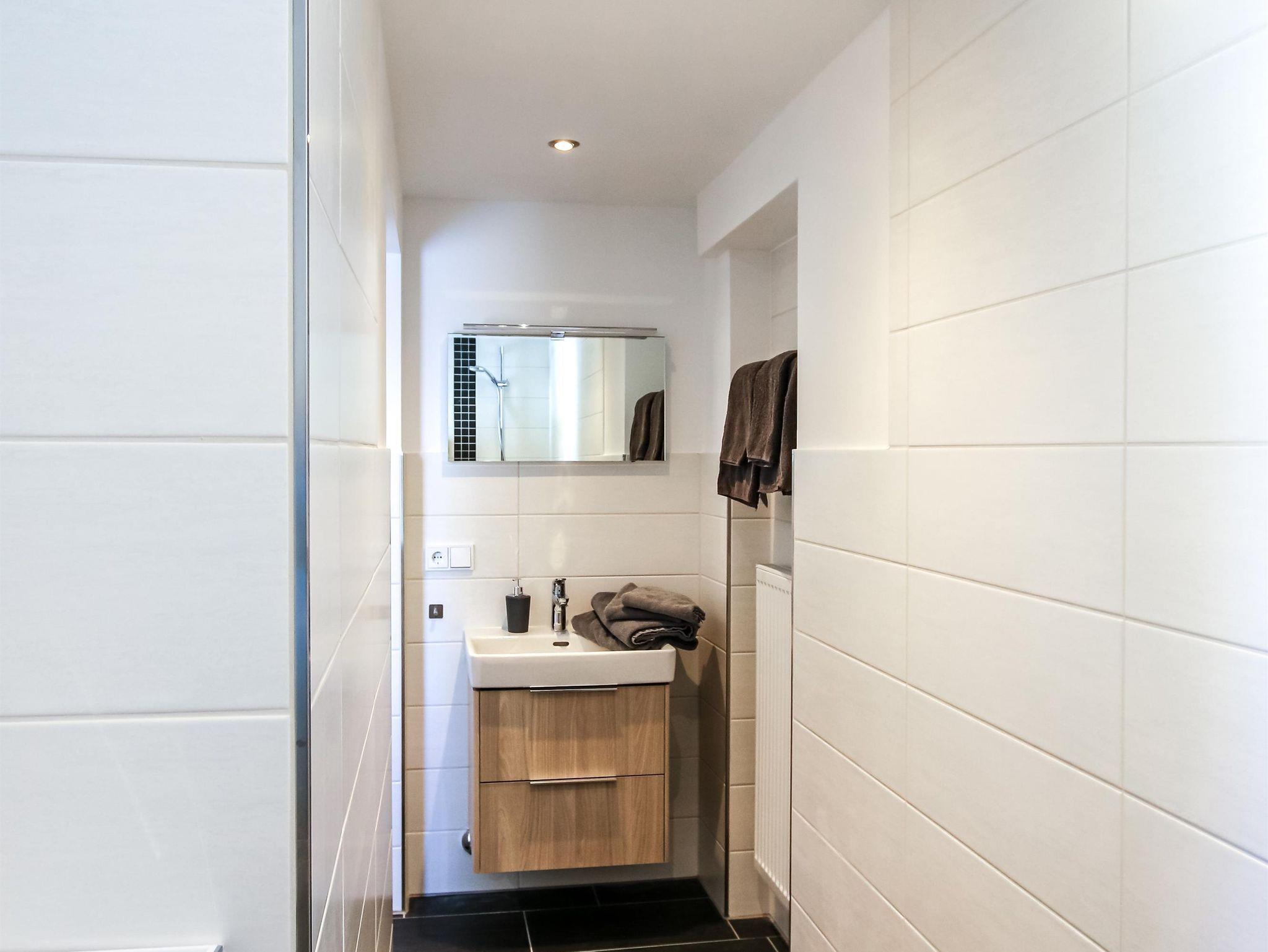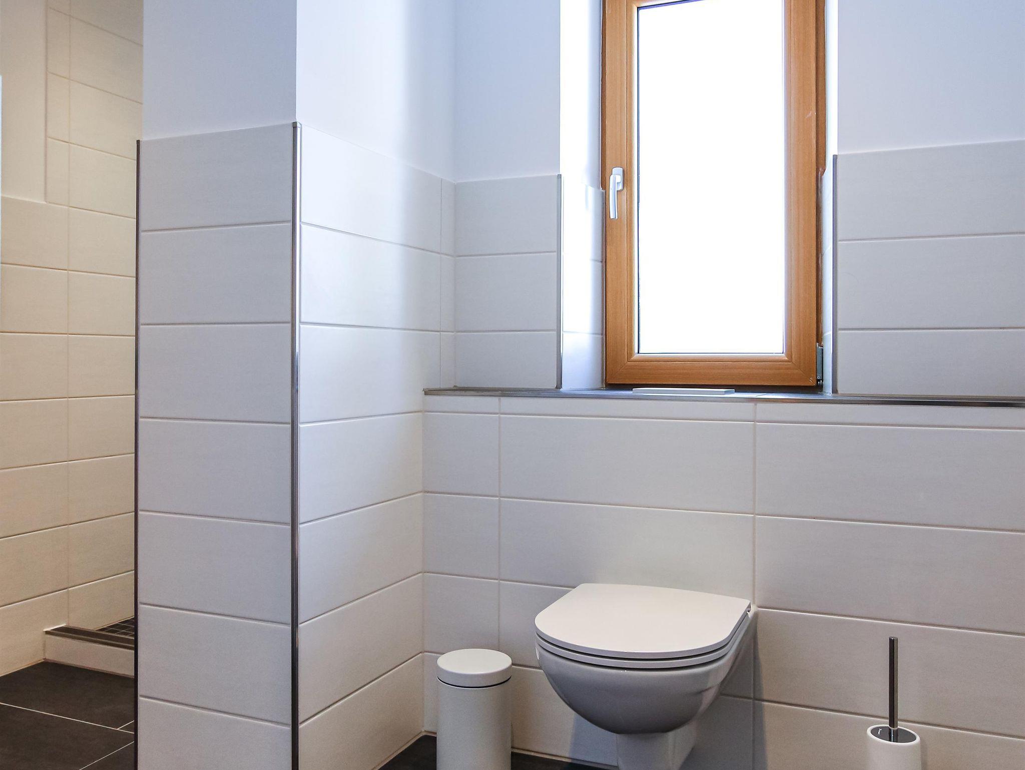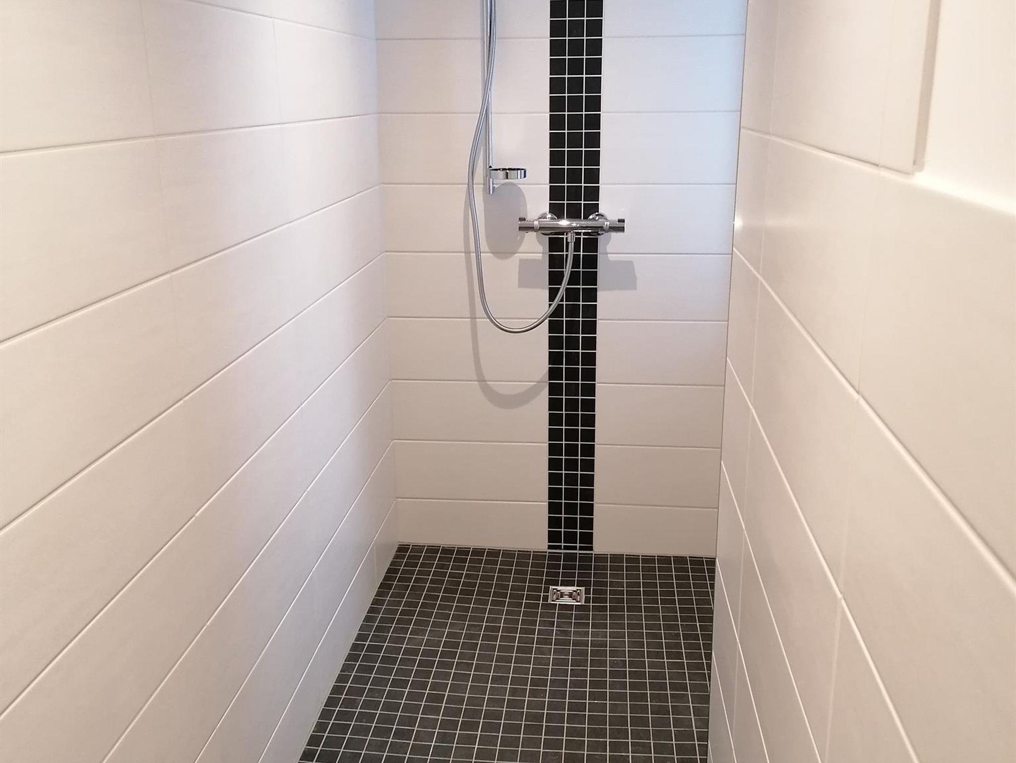 Das sehr große Badezimmer ist mit einer großen begehbaren Dusche ausgestattet.