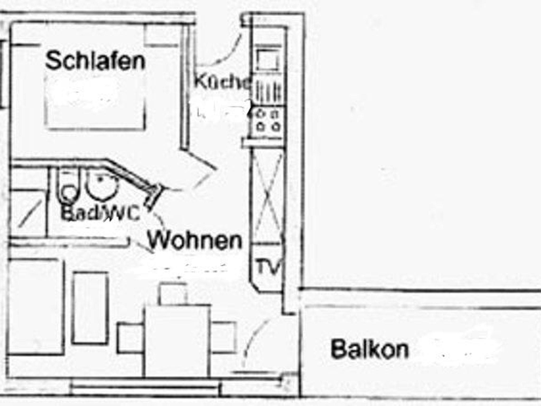 Die 2-Raum-Ferienwohnung befindet sich im 1. Obergeschoss und ist ca. 35 m² groß.