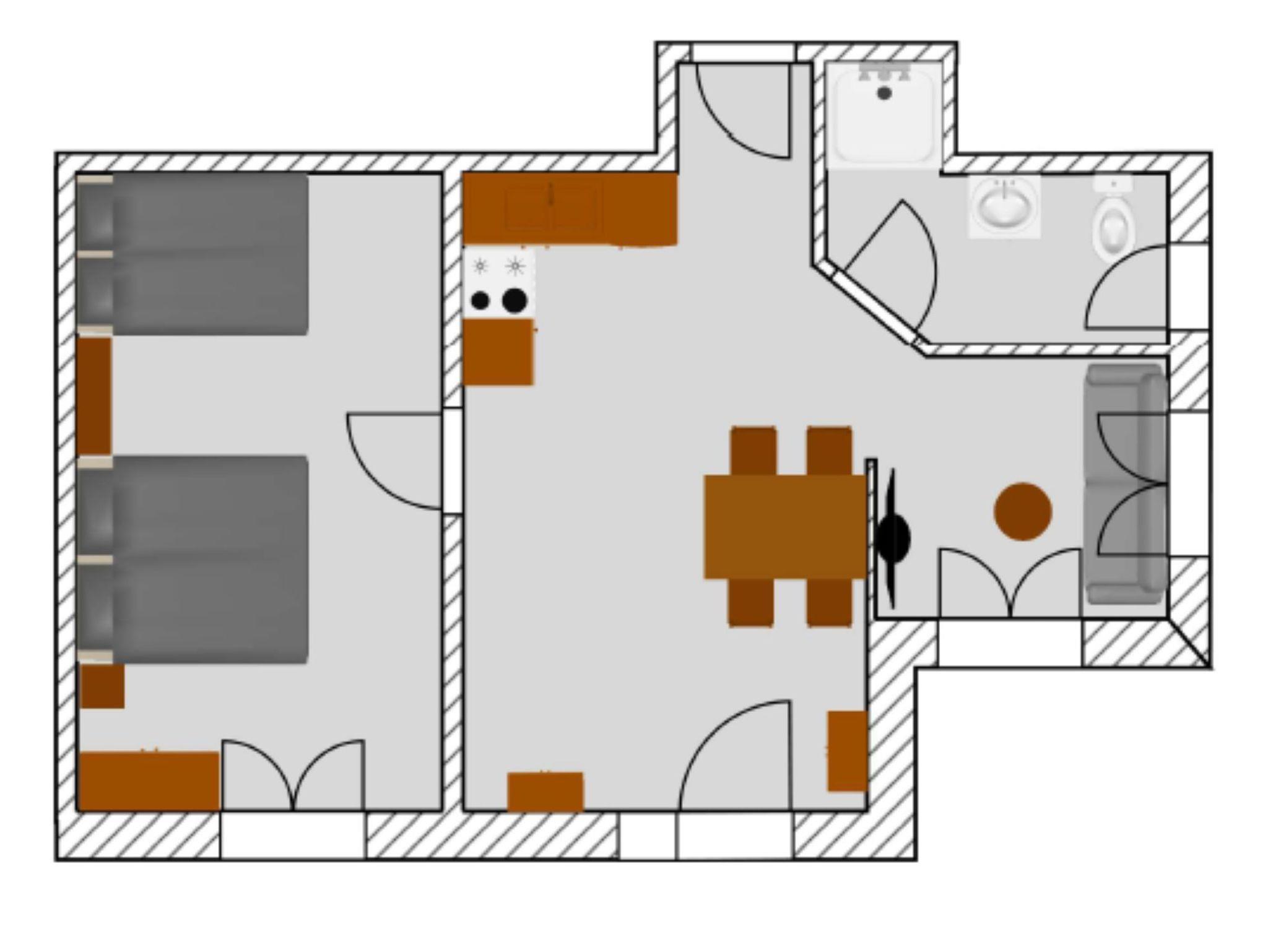 Die Nichtraucher-Wohnung befindet sich im Untergeschoss des Hauses und ist über einen separaten, ebenerdigen Eingang erreichbar. Es steht eine kleine, teilweise überdachte Ostterasse zur alleinigen Nutzung zur Verfügung.