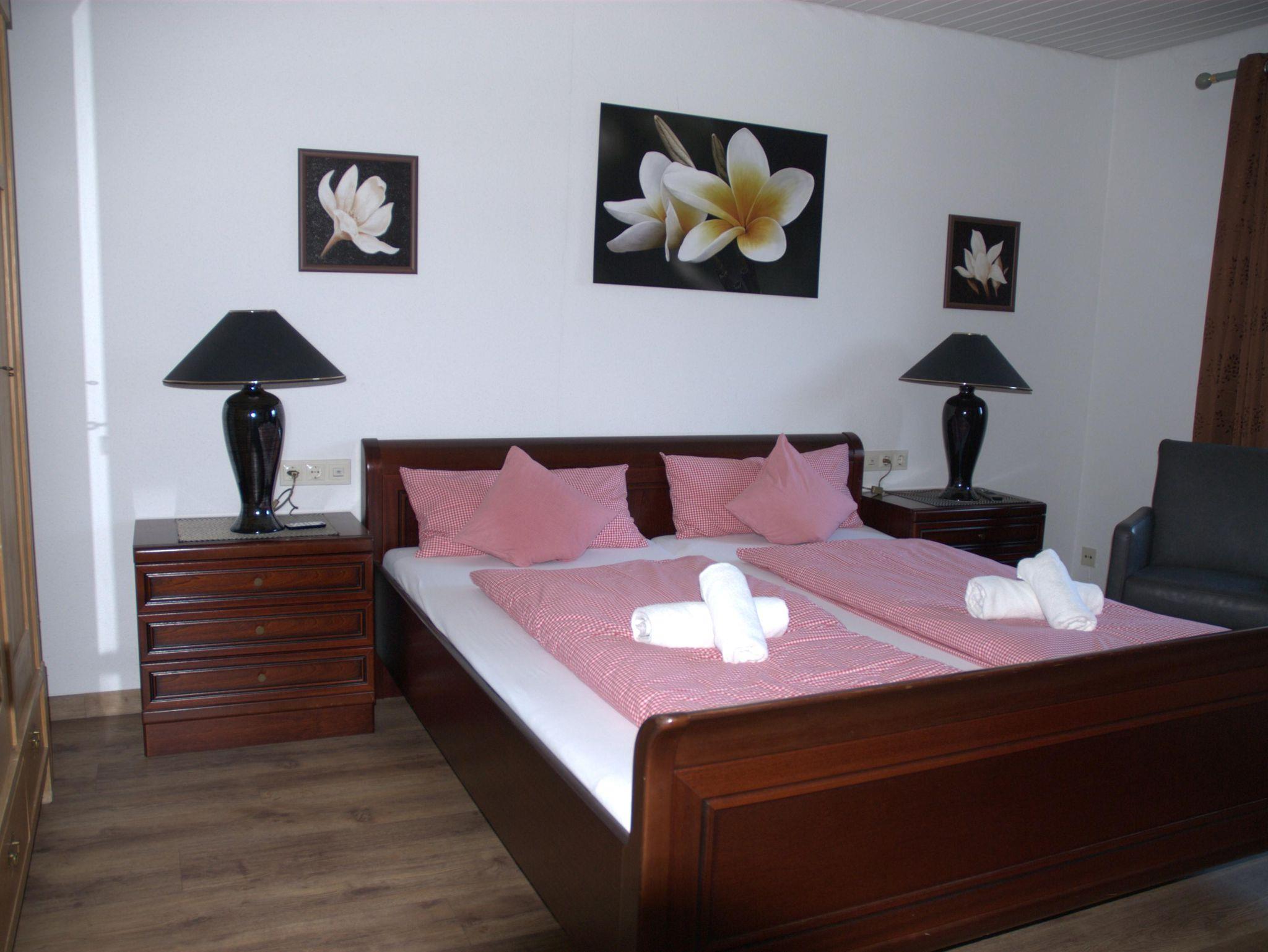 Die Wohnung hat ein Schlafzimmer mit Doppelbett. Ein Babybett beigestellt werden. Für weitere Begleitpersonen (max. 2) besteht im Wohn-Esszimmer die Möglichkeit die Couch auszuziehen. Badezimmer mit Badewanne, Toilette und Waschtisch verbindet das Schlaf- und das Wohn-Esszimmer. Ein großzügiger Balkon mit Möbel sind inklusive. Kein Teppichboden. Für diese Ferienwohnung ist ein Stellplatz für einen PKW vor dem Haus reserviert.