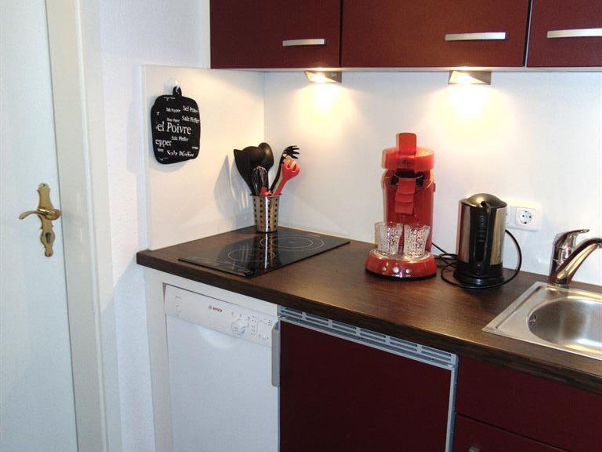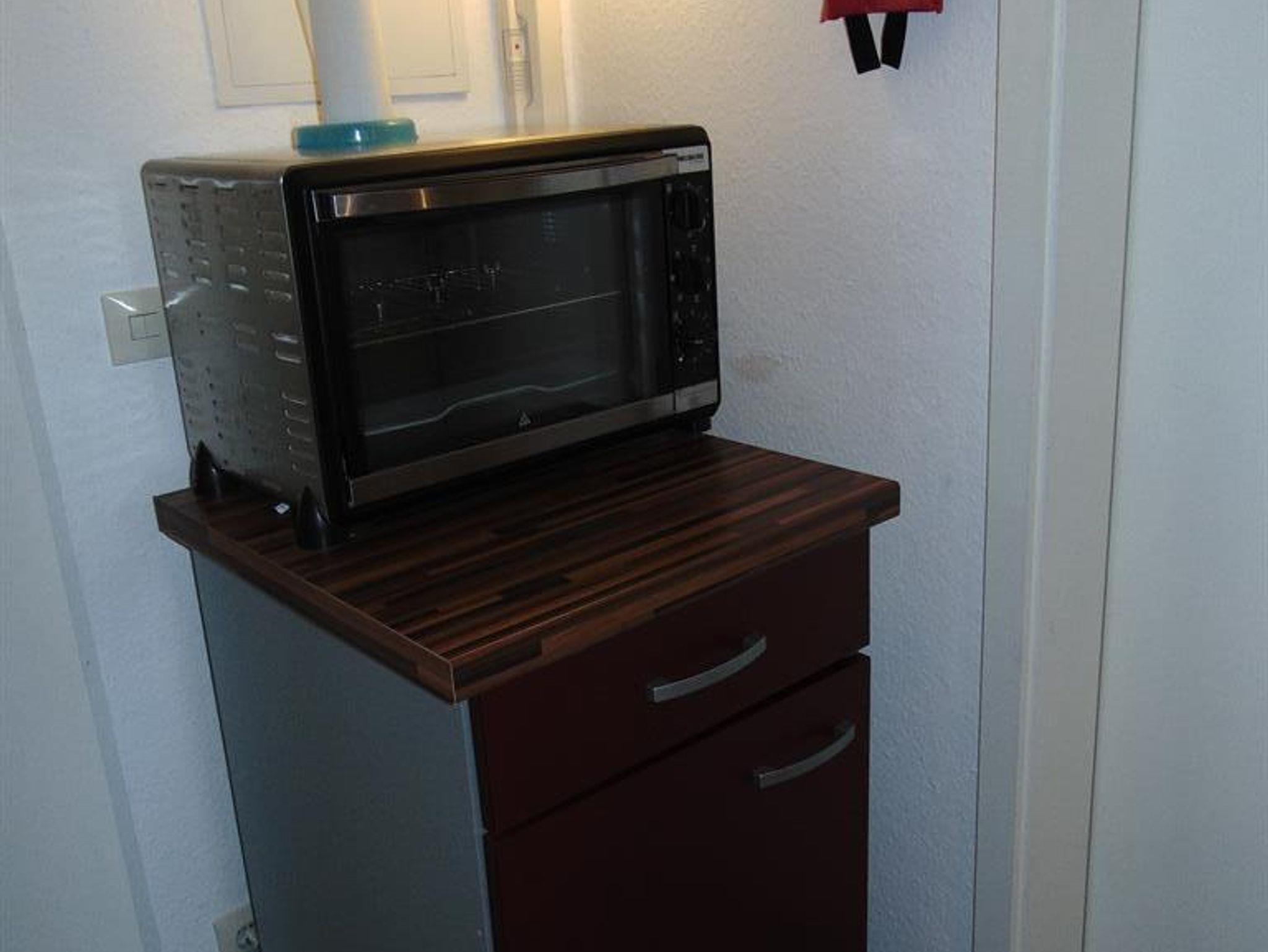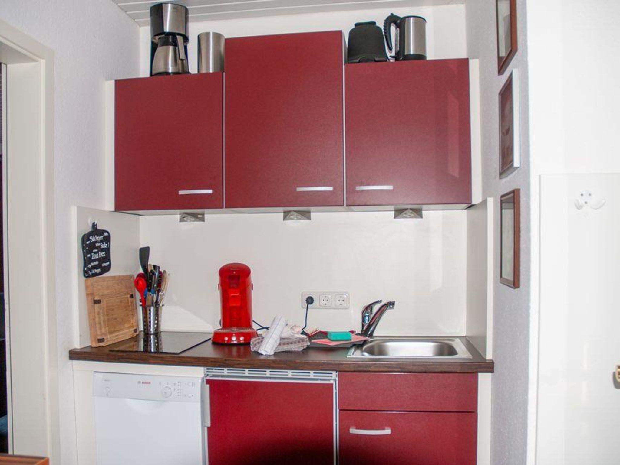 Diese gemütliche 2-Zimmer Ferienwohnung mit großer Terrasse und Panoramablick verfügt über eine kleine jedoch komplett ausgestattete Küche mit Kochmöglichkeit, kleinem Backofen, Spülmaschine, Kühlschrank mit Gefrierfach, Kaffeemaschine und Wasserkocher.