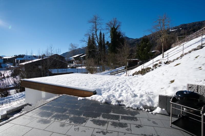 Im Erdgeschoss erwartet Sie eine kleine Küche von welcher Sie in den geräumigen Wohn-Essbereich gelangen. Hier können Sie sich an einem der beiden Essplätze, einer gemütlich am warmen Kachelofen der andere in einem Erker mit Ausblick bei einem ausgiebigen Frühstück oder einem Gläschen Wein entspannen oder Sie machen es sich auf der großen Sofalandschaft im geräumigen Wohnzimmer bequem. Von hier aus gelangen Sie auf die große Terrasse die im Sommer und im Winter ein herrlicher Ort ist um die warmen Sonnenstrahlen und die schneebedeckte, glitzernde Bergwelt zu genießen. In dieser Etage befinden sich zwei Schlafzimmer jeweils mit Doppelbett ausgestattet, ein separates WC und ein Badezimmer mit Dusche, Badewanne, Bidet und WC.