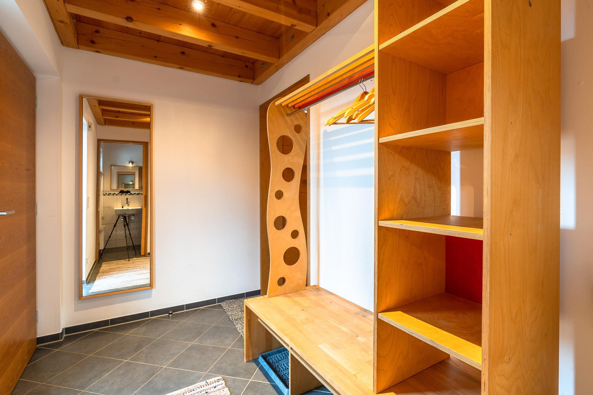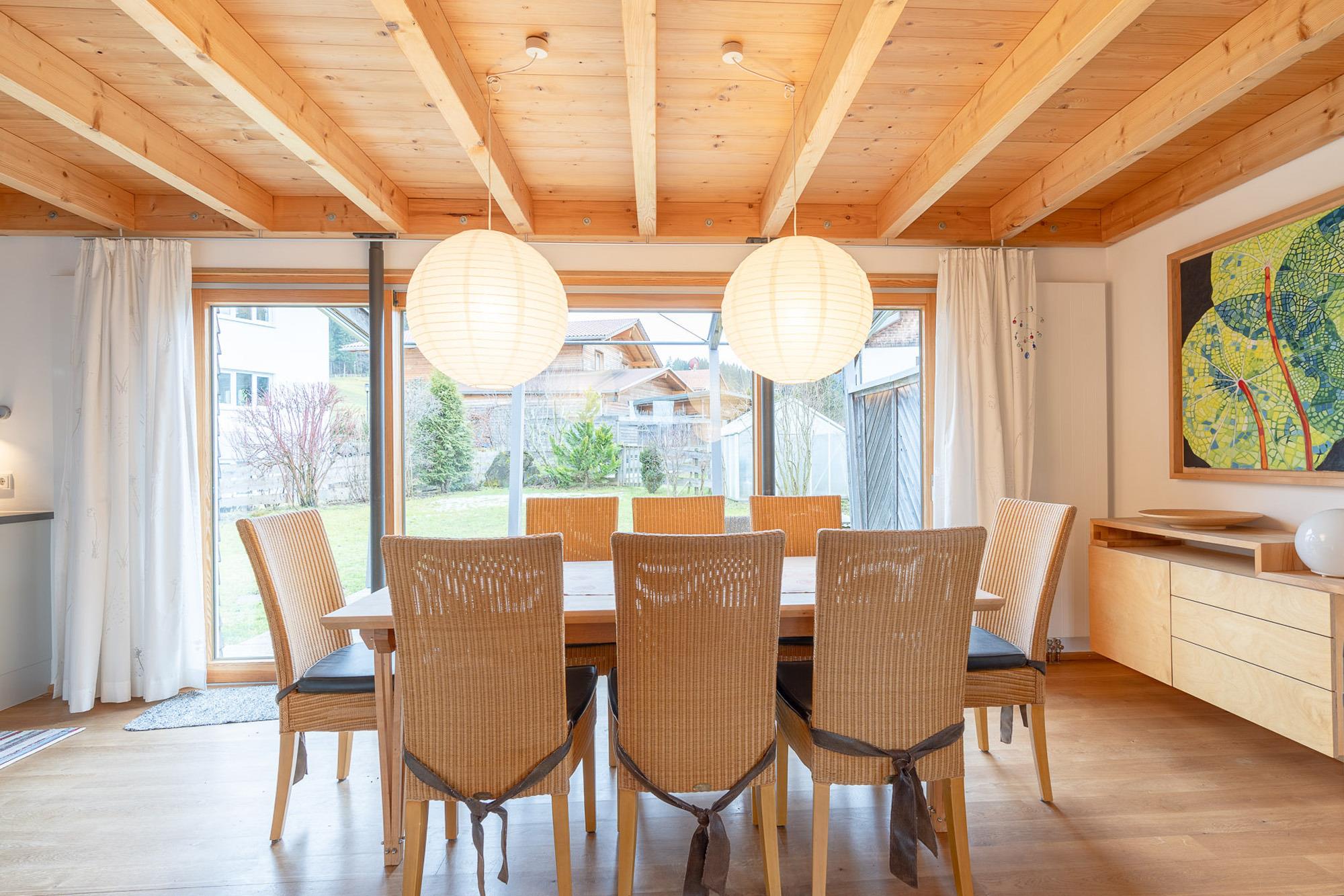 Dieses „QB Ferienhaus“ bietet einen besonderen Comfort und passt sich dem Allgäuer Ambiente ideal an. Das Ferienhaus ist ein aus vorwiegende heimischen Hölzern konstruiert. Die sichtbaren Holzoberflächen sorgen für ein angenehmes Wohnklima. In den Schlafräumen wurde eine Netzfreischaltung bei der Elektroinstallation realisiert, um einen unbelasteten Schlaf zu garantieren. Der Verzicht auf Satelliten-Fernsehen erfolgte daher bewusst. WLAN steht Ihnen selbstverständlich zur Verfügung.[nbsp]