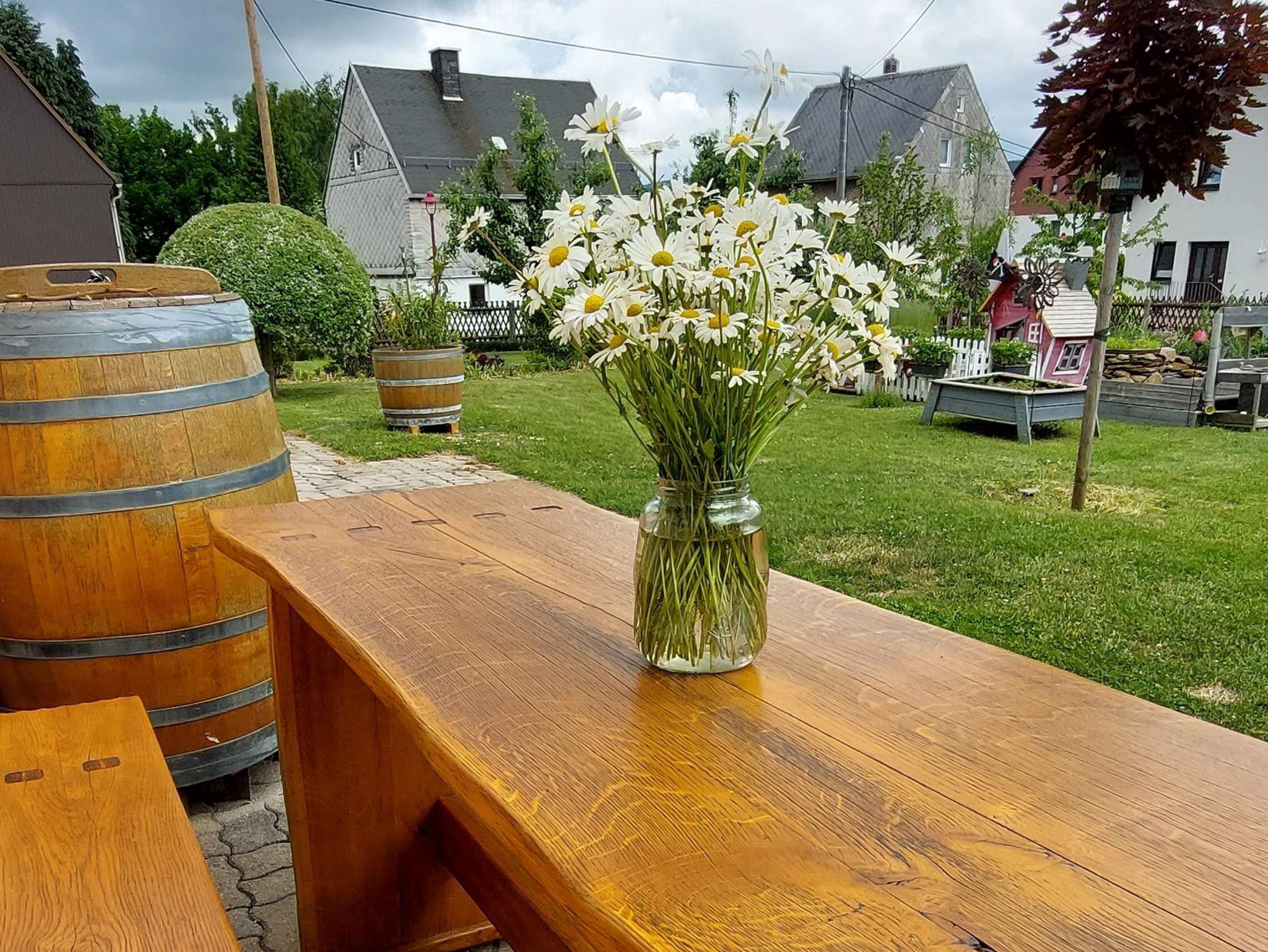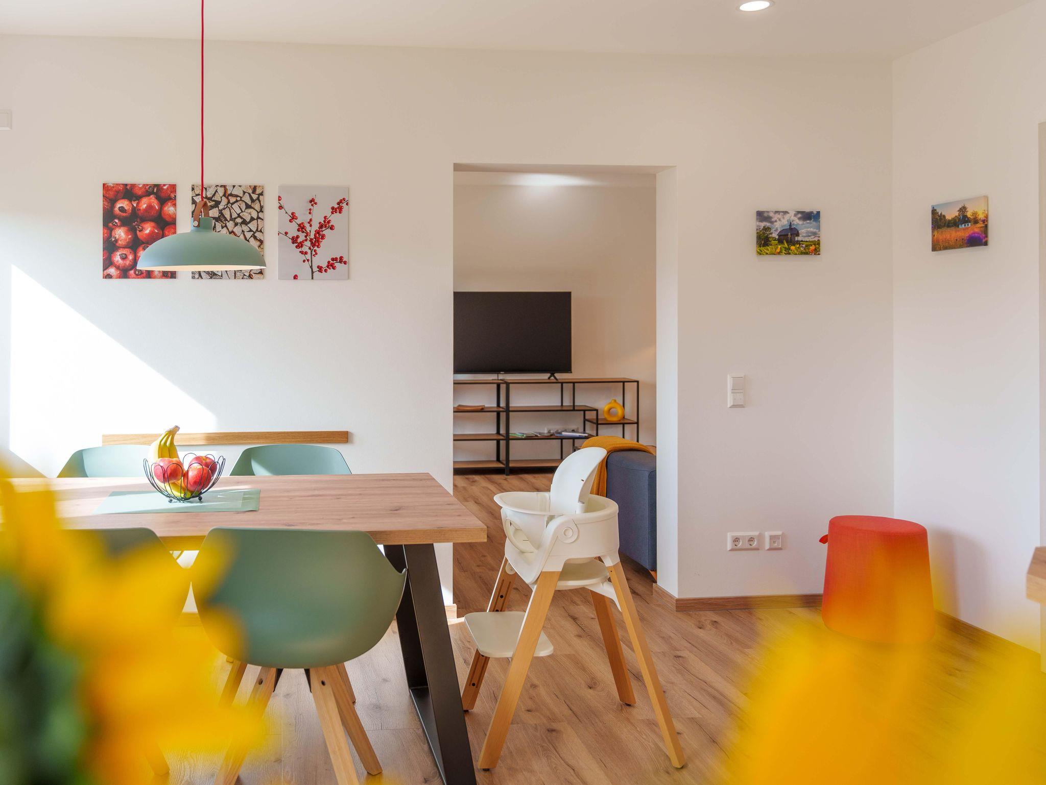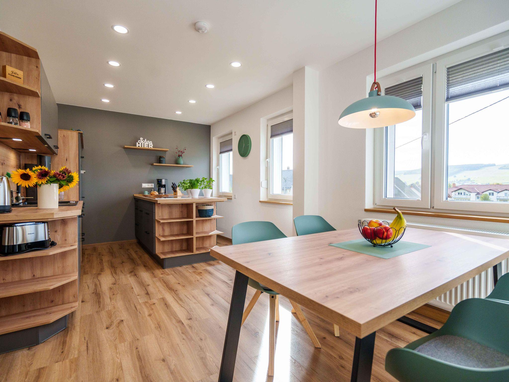 Herzlich Willkommen in unserer großzügigen und komfortablen Ferienwohnung. Sie ist der perfekte Rückzugsort für Ihren erholsamen Urlaub. Es bietet sich ein herrlicher Blick auf die umliegende Landschaft und Natur. Erkunden Sie von diesem idealen Ausgangspunkt die Schönheit des Erzgebirges. Für Ihren nachhaltigen Aufenthalt bei uns legen wir besonderen Wert auf umweltfreundliche Energiequellen und klimaneutrale Maßnahmen. Unsere Ferienwohnung wird durch eine eigene Photovoltaikanlage mit sauberem Strom versorgt. Zusätzlich nutzen wir Solarthermie zur umweltfreundlichen Wärmeerzeugung. Der große Garten vor dem Haus lädt zur Erholung ein und verfügt über einen Sitzbereich mit Grillmöglichkeit. Für unsere kleinen Gäste gibt es ausreichend Spielmöglichkeiten sowie viel Platz auf der grünen Wiese. Im Garten wachsen saisonales Obst, Gemüse und Küchenkräuter.
