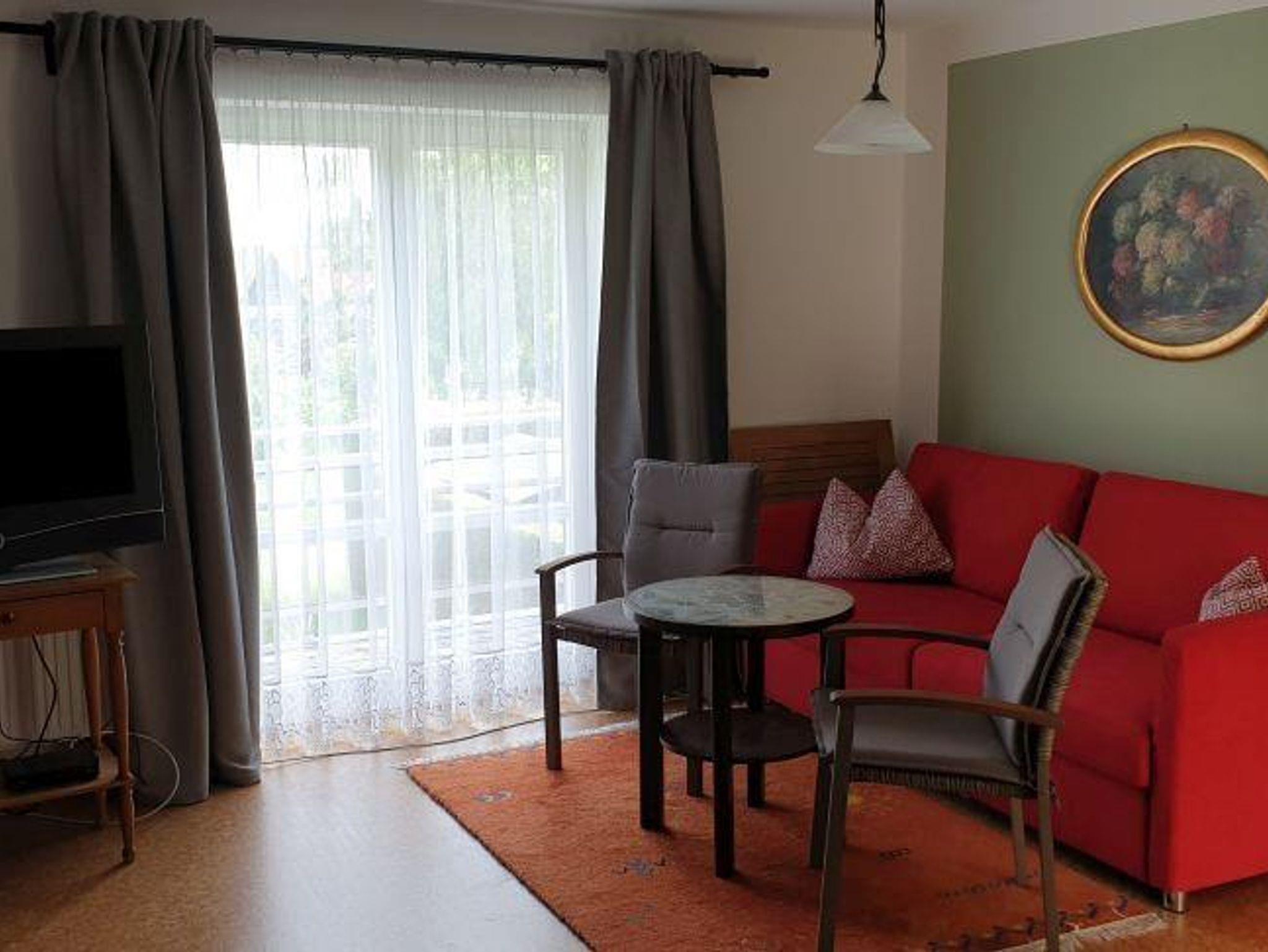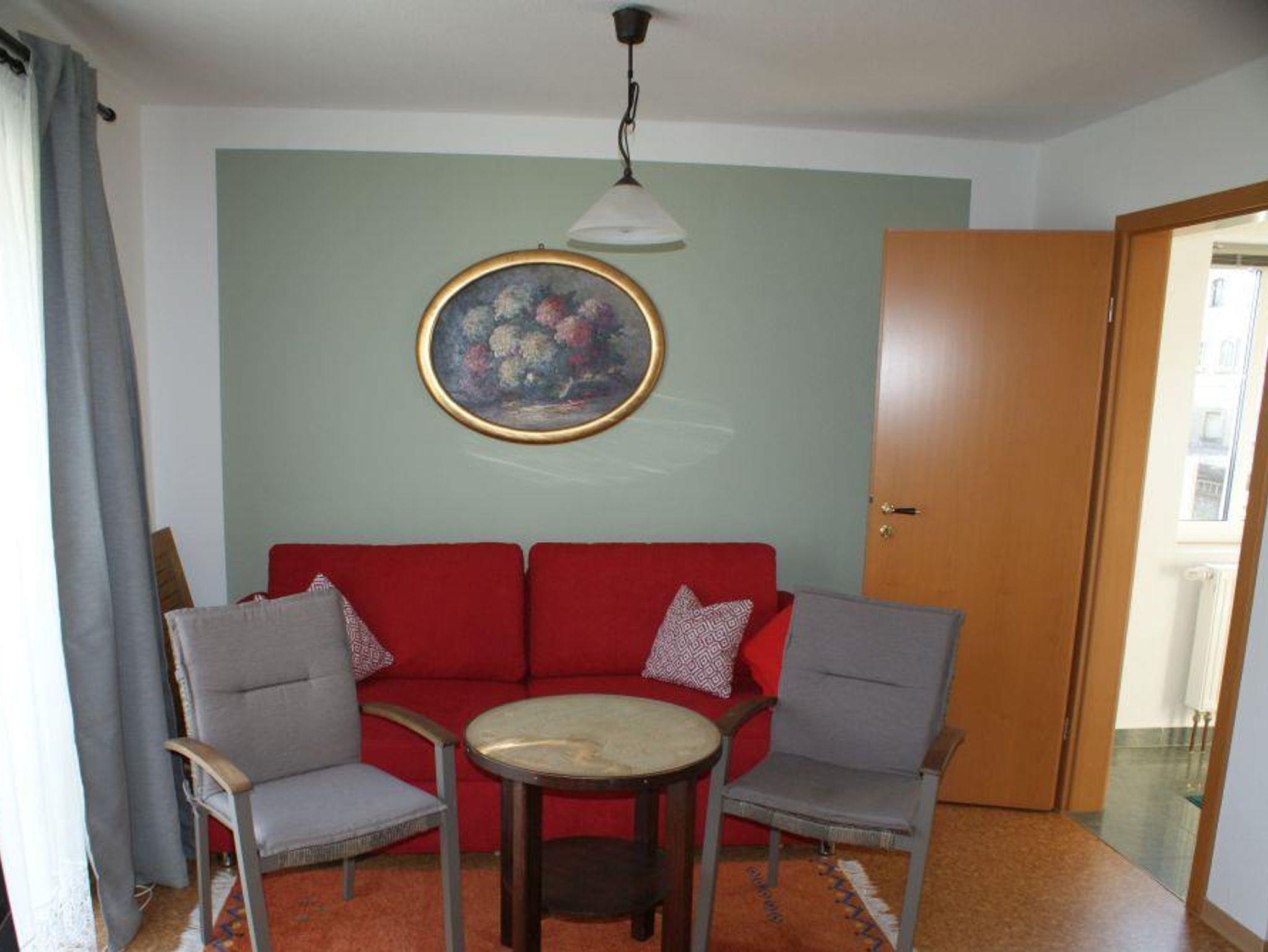 Die neu renovierte Ferienwohnung ist 45 m² groß, befindet sich im 1. Obergeschoss und verfügt über zwei Räume - eine Wohnküche und einen separaten Schlafraum, ein Bad und einen Balkon. Im Schlafzimmer ist ein Boxspringbett vorhanden und eine ausklappbare Couch für bis zu 2 Erwachsene. In der Wohnküche befindet sich eine neue Sitzgruppe.