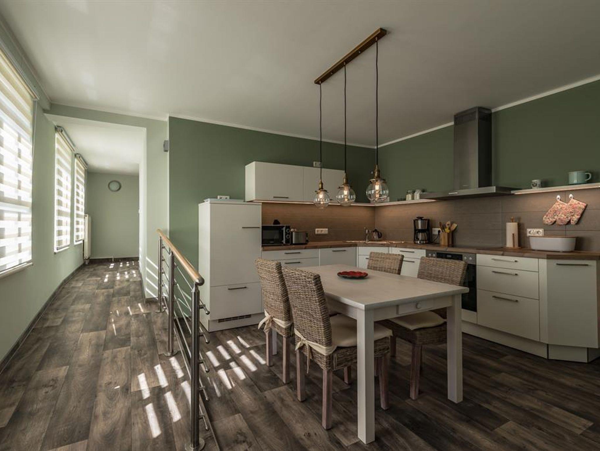 • voll ausgestattete Küche (Kühlschrank, Spülmaschine, Kaffeevollautomat, Toaster, Mikrowelle, Herd)