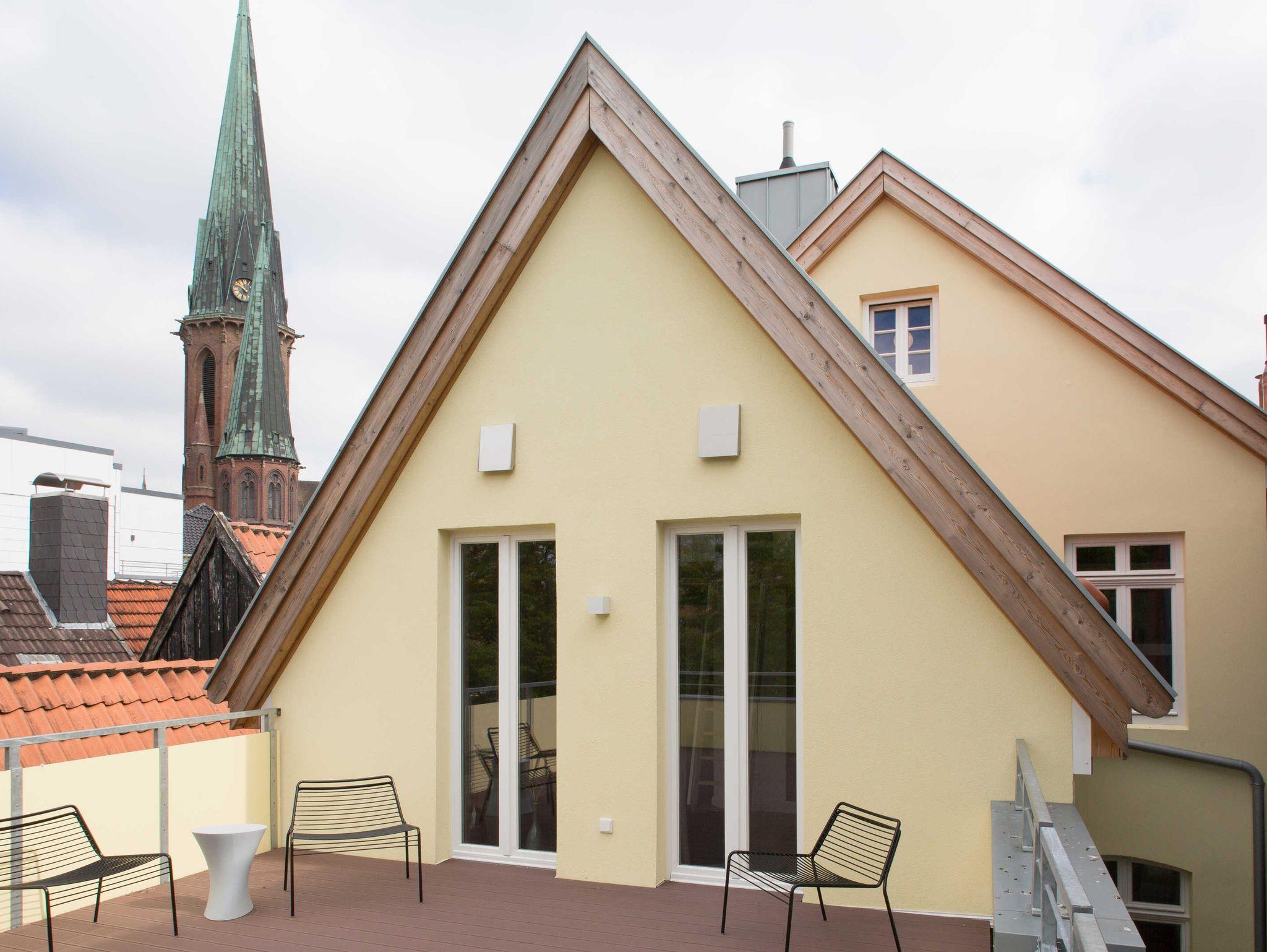 Die stilvolle Unterkunft am Schlossplatz liegt im unmittelbaren Stadtzentrum Oldenburgs. Sie ist nur ca. 60 m vom historischen Schloss entfernt & bietet zudem zahlreiche Restaurants in direkter Nähe. Sie können unsere Unterkünfte wahlweise mit Blick in den Garten oder mit Blick auf die historische Altstadt buchen. WLAN nutzen Sie in unseren Unterkünften kostenfrei.