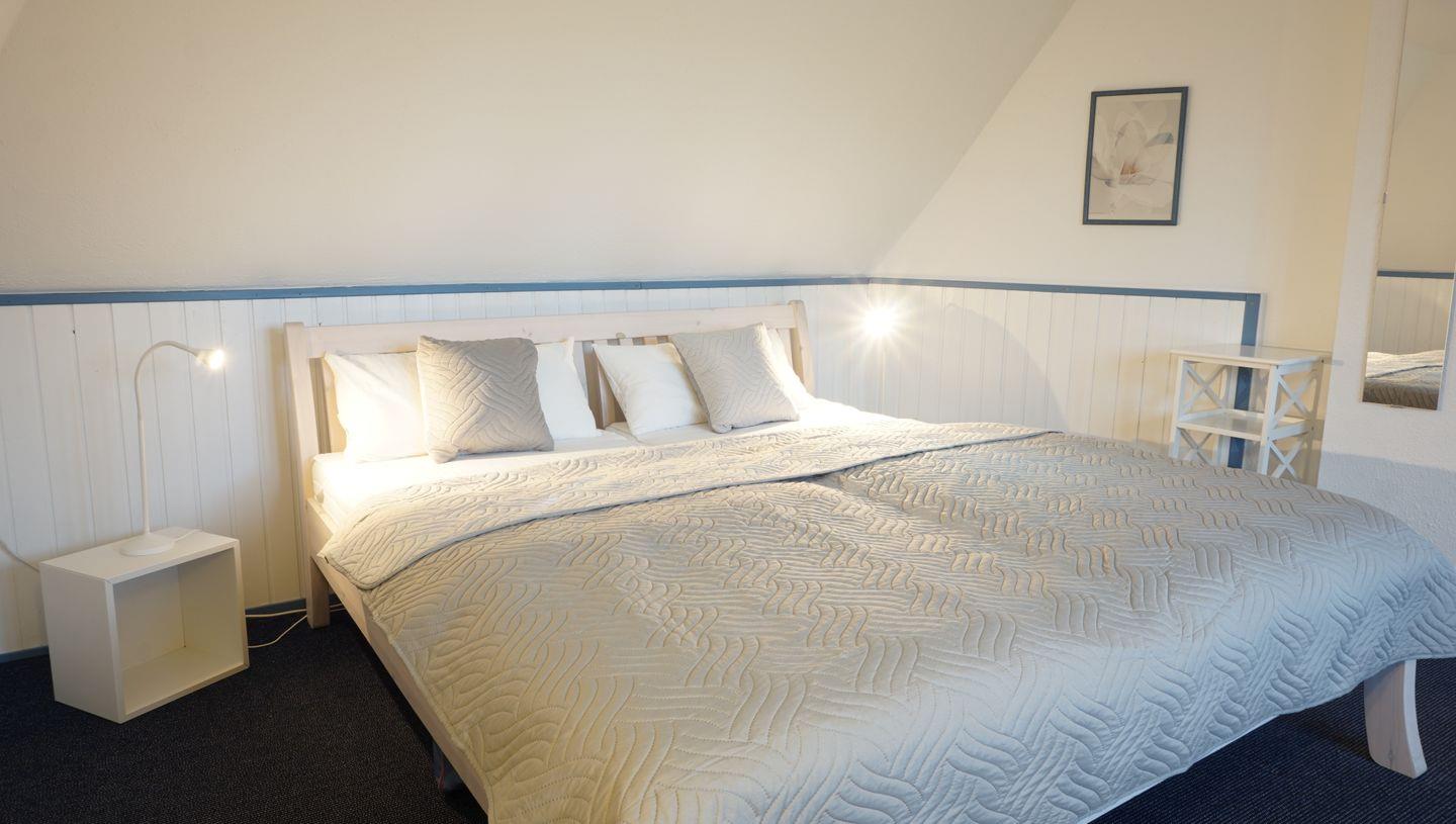 Schlafzimmer mit Doppelbett.