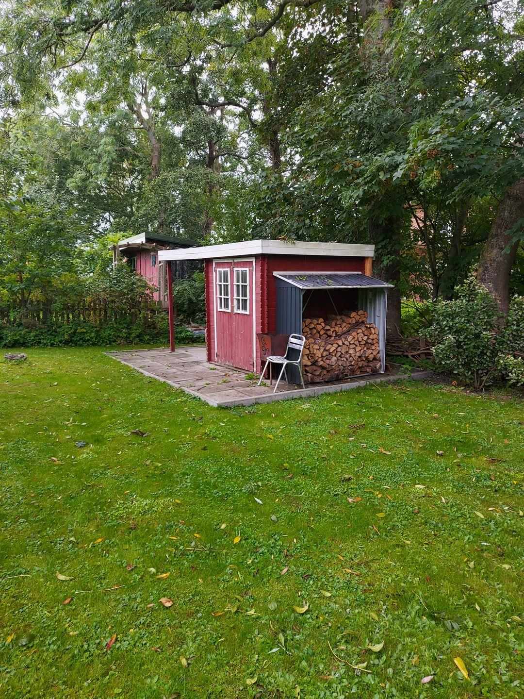 Fahrräder können auf der Terrasse des Gartenschuppens abgestellt werden.