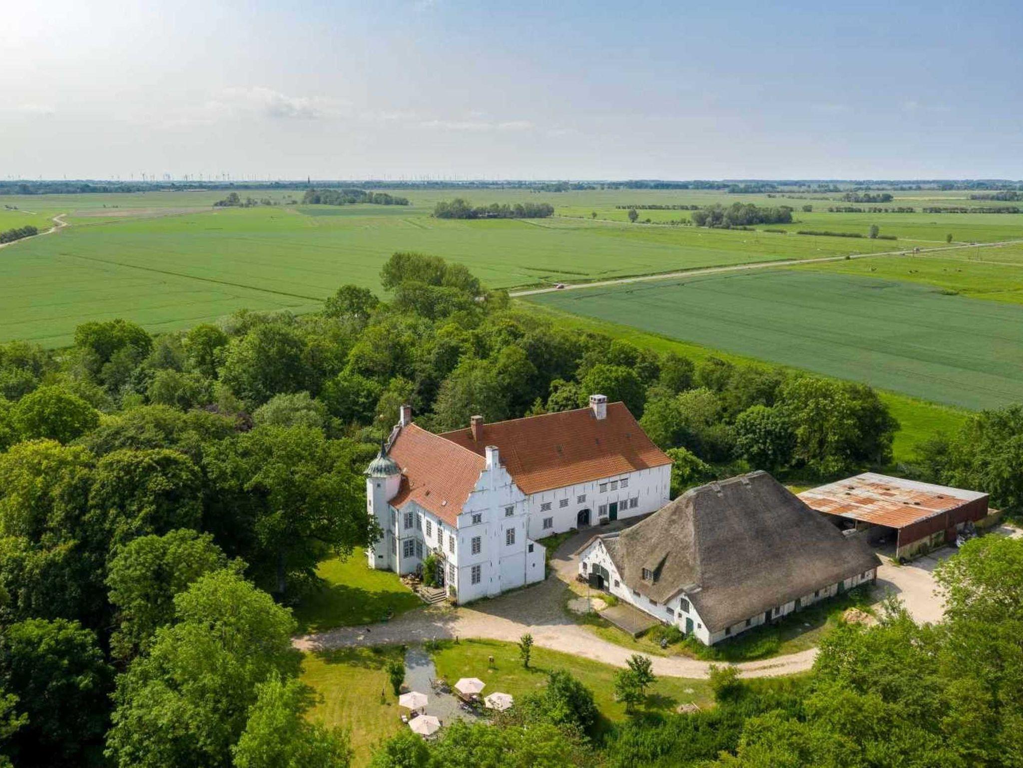 Gemütliche 2-Zimmer-Ferienwohnung Storchennest im Herrenhaus Hoyerswort mit ca. 40 m² auf 1 Ebene (EG) für bis zu 4 Personen. In ruhiger Lage im Grünen auf dem Schloss in Oldenswort. Der Holzdielenboden und die historischen Deckenbalken verleihen dieser Wohnung eine einzigartige Atmosphäre. In der Einrichtung vermischt sich die Moderne mit restaurierten Schmuckstücken. Von allen Räumen haben Sie einen schönen Ausblick ins Grüne. Hunde sind herzlich willkommen!