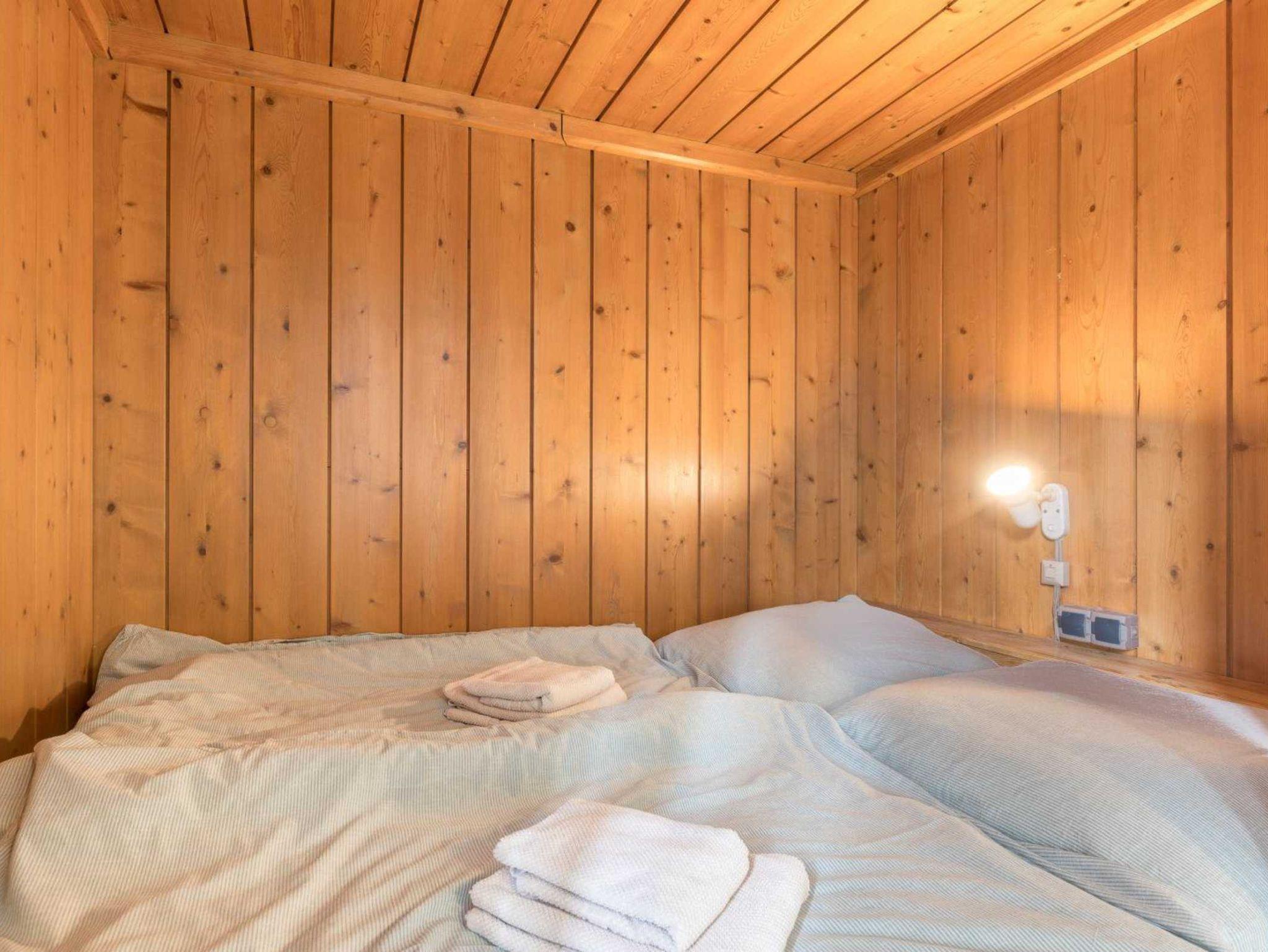 Schlafzimmer mit 2 Etagen-Einzelbetten (je 90x200cm) und einem Kleiderschrank.
