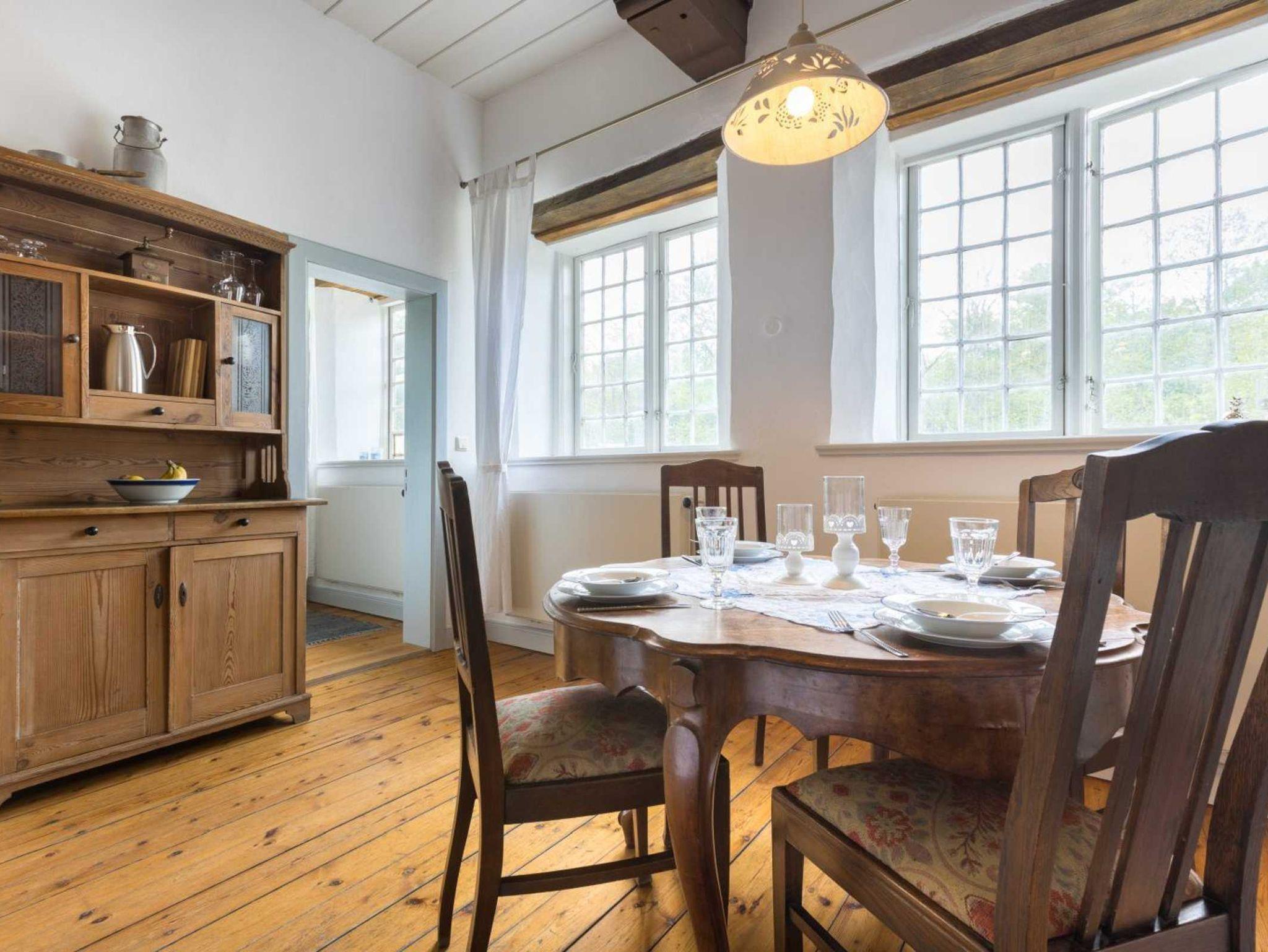 Saunabereich gegen Gebühr vorhanden. Die Schloss-Gäste können die Terrasse sowie den Garten mit Gartenmöbeln, Grillmöglichkeit und Liegewiese mitnutzen. In der ehemaligen Gesindeküche des Westflügels befindet sich heute eine urgemütliche Sitzecke für gesellige Momente. Kinderhochstuhl und Kinderreisebett kostenlos vorhanden (nach Verfügbarkeit).