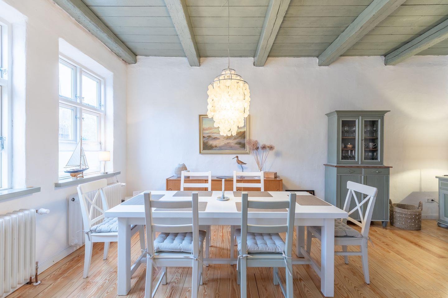 Die 140 qm große Ferienunterkunft ist komfortabel und mit viel Liebe zum Detail eingerichtet. Vom großzügigen Eingangsbereich erreichen Sie die offene Wohnküche, in der es Ihnen an nichts fehlen wird: Ceran-Kochfeld, Backofen, Geschirrspüler, Kühl- und Gefrierschrank, Toaster, Wasserkocher uvm. Der große Esstisch lädt zum köstlichen Familiendinner oder ausgiebigen Urlaubsfrühstück ein.