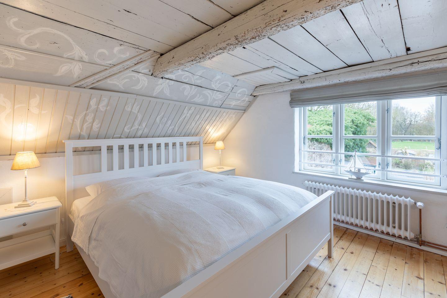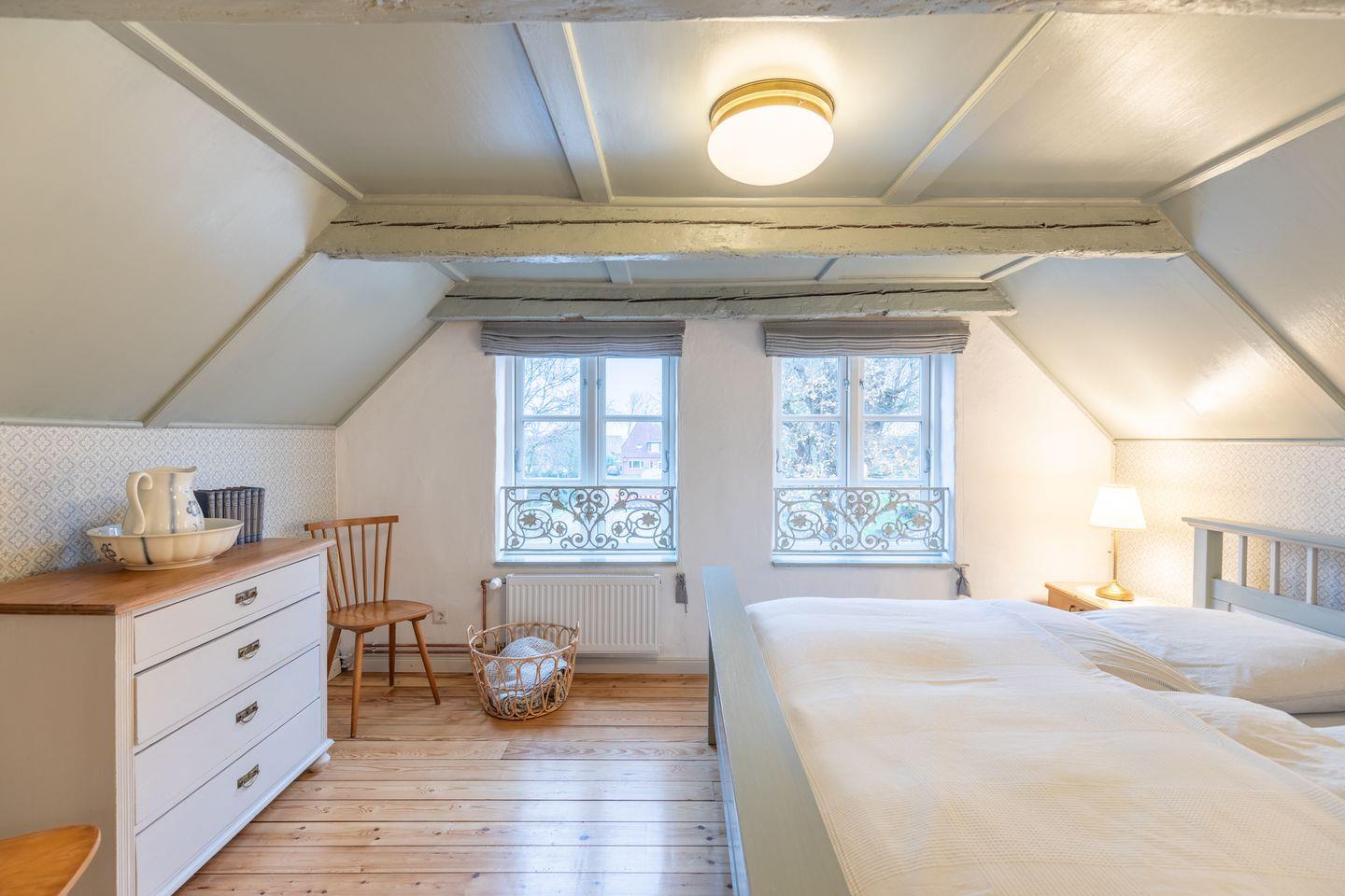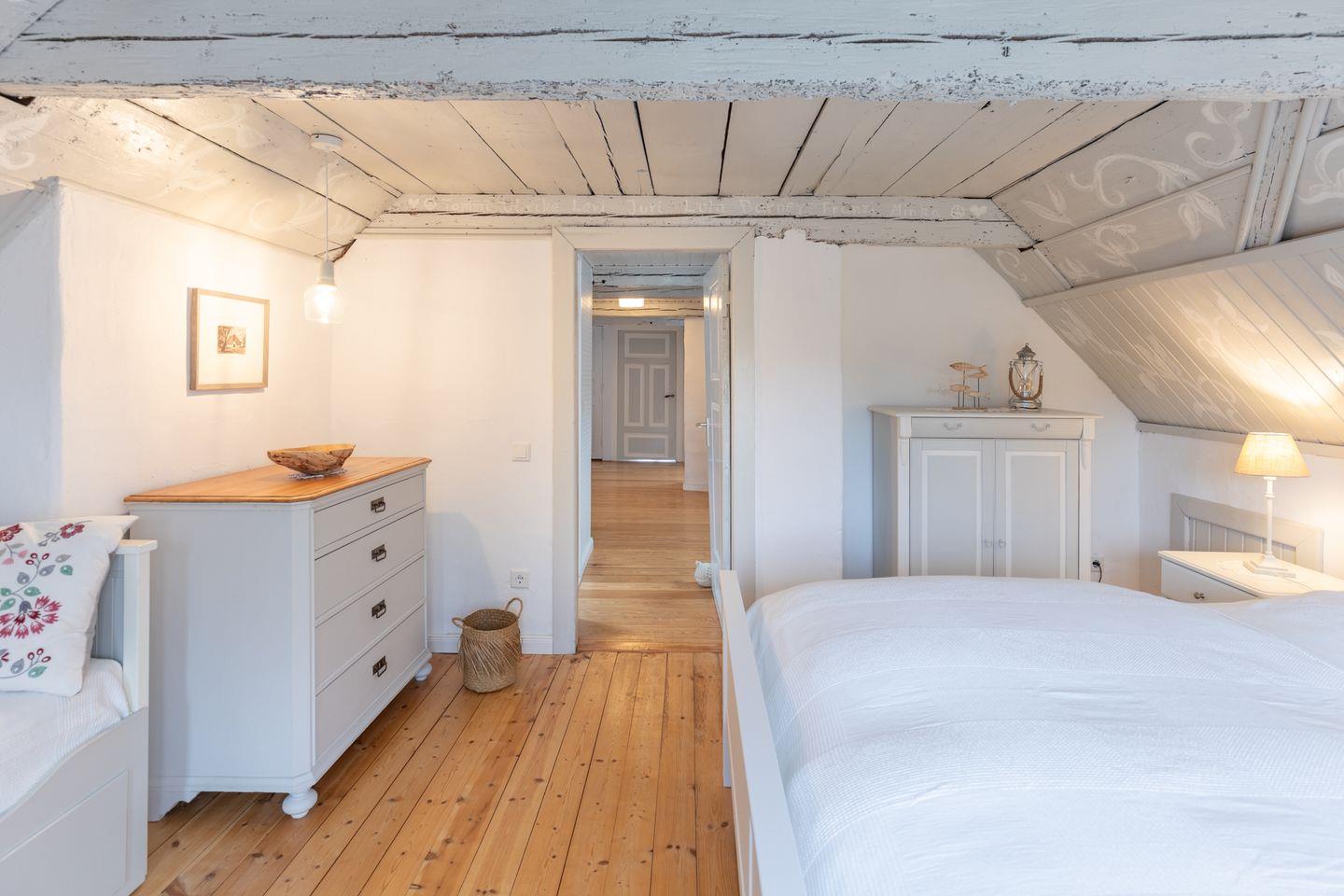 Über eine geschlossene Holztreppe gelangen Sie in das Obergeschoss, welches mit zwei großzügigen Schlafzimmern ausgestattet ist, beide mit einem Doppelbett (180x200). Auf der Empore befindet sich noch ein zusätzliches, kleines Bett (90x180).