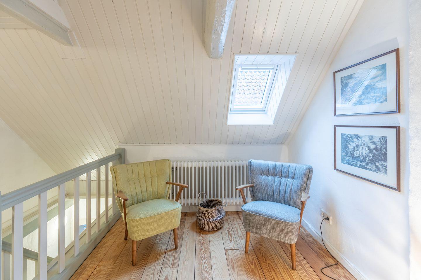 Die perfekte Rückzugsecke: der gemütliche Wohnbereich mit seiner kleinen Bibliothek empfängt Sie mit seiner Sofa-Sesselecke zu gemütlichen Stunden vor dem prasselnden Kaminofen. Das moderne Duschbad im Erdgeschoss rundet das Bild ab.