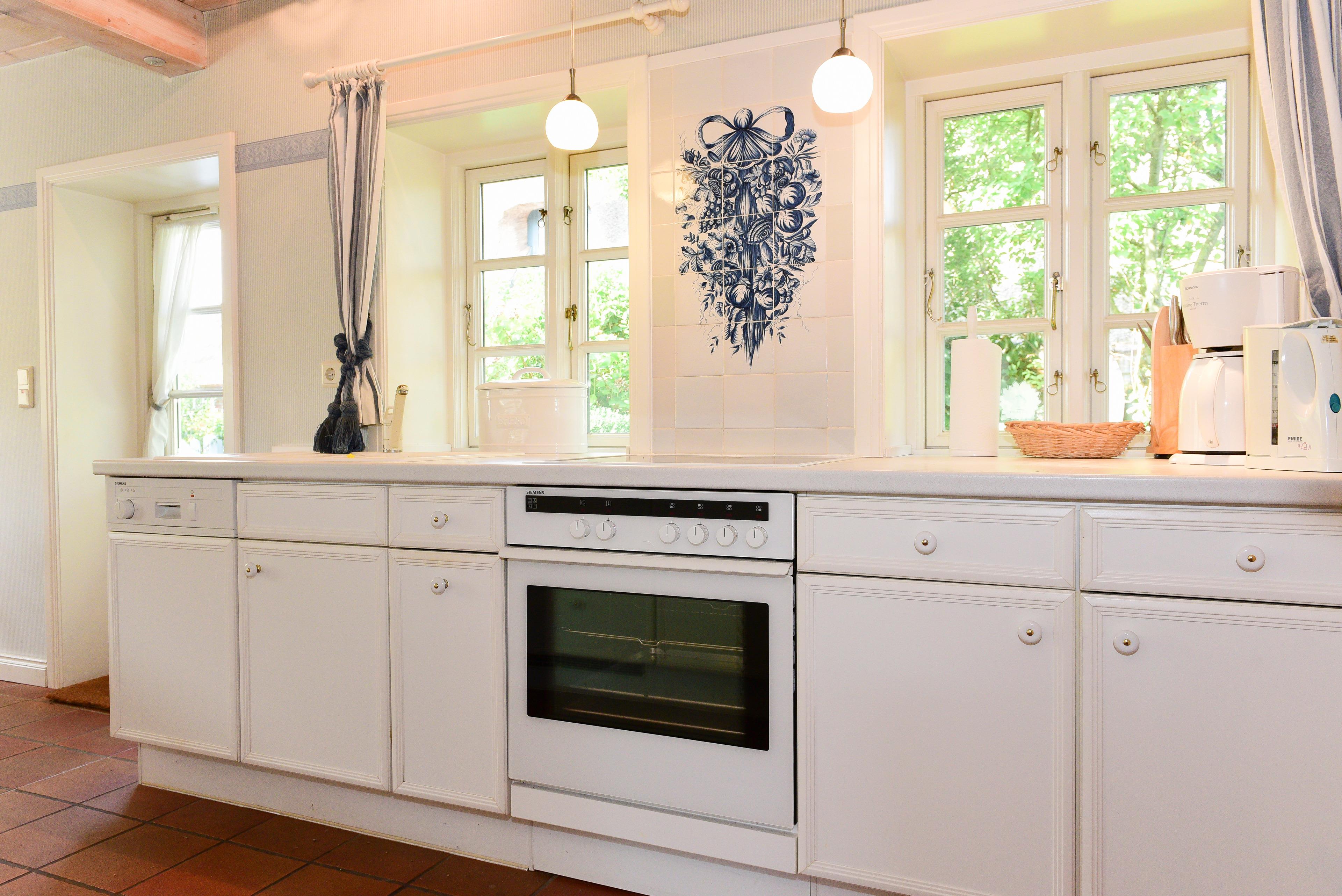 Die moderne, komplett ausgestattete Einbauküche ist direkt mit dem Wohnzimmer sowie dem Hausflur verbunden und bietet alles, was Sie für kulinarische Genüsse brauchen.