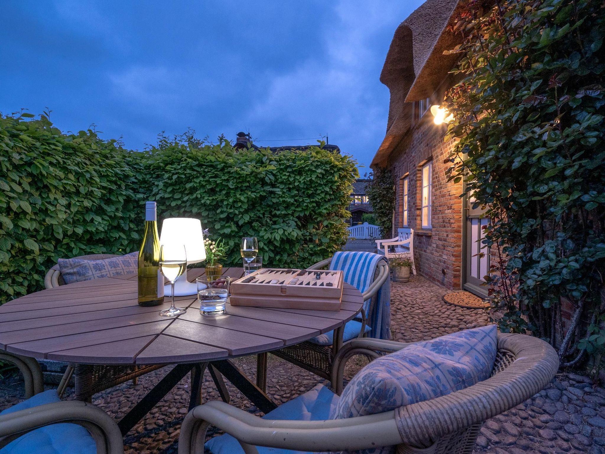 Mach mal Foehr AngebotDido Elisa Ein friesisches Kleinod voller Geschichte, Geborgenheit und nordischem Charme.Im malerischen Künstlerdorf Oldsum auf Föhr liegt das Reetdachhaus Dido Elisa, ein liebevoll saniertes Kapitänshaus aus dem Jahr 1631. Hinter seinen alten Mauern vereint sich Atmosphäre vergangener Zeiten mit stilvoller Behaglichkeit perfekt für alle, die Ruhe, Natur und Inselgefühl suchen.Das Haus bietet auf ca. 70qm Raum für 4 Personen. Im EG befindet sich ein einladendes Wohnzimmer mit historischem Kachelofen, eine gut ausgestattete Küche sowie ein Badezimmer mit Dusche. Von hier aus gelangen Sie auch in die windgeschützte Sitzecke mit Strandkorb und Gartenmöbel. Ein Platz für ein Frühstück am Morgen, Lesestunden im Schatten, einem Glas Wein bei warmem Licht in der Abenddämmerung oder für Nachtschwärmer der faszinierende Sternenhimmel.Im OG befinden sich zwei liebevoll eingerichtete Schlafzimmer eines mit Doppelbett, das andere mit zwei Einzelbetten. In einer Fensternische wurde ein gemütlicher Leseplatz geschaffen, mit Blick auf den Apfelgarten. Zum Strand sind es nur wenige Kilometer. Wer den Wind liebt, wird ihn hier überall spüren mal wild, mal sanft, immer echt.Oldsum ist ein Ort mit kleinen Cafés und einem Krämerladen, wo man alles für den täglichen Bedarf findet. Hund sind willkommen. Fahrradverleih nur 50m entfernt. Nichtraucherhaus Dido Elisa ist ein Ort zum Aufatmen, Ankommen und Wiederkehren. Ein friesischer Herzensplatz.