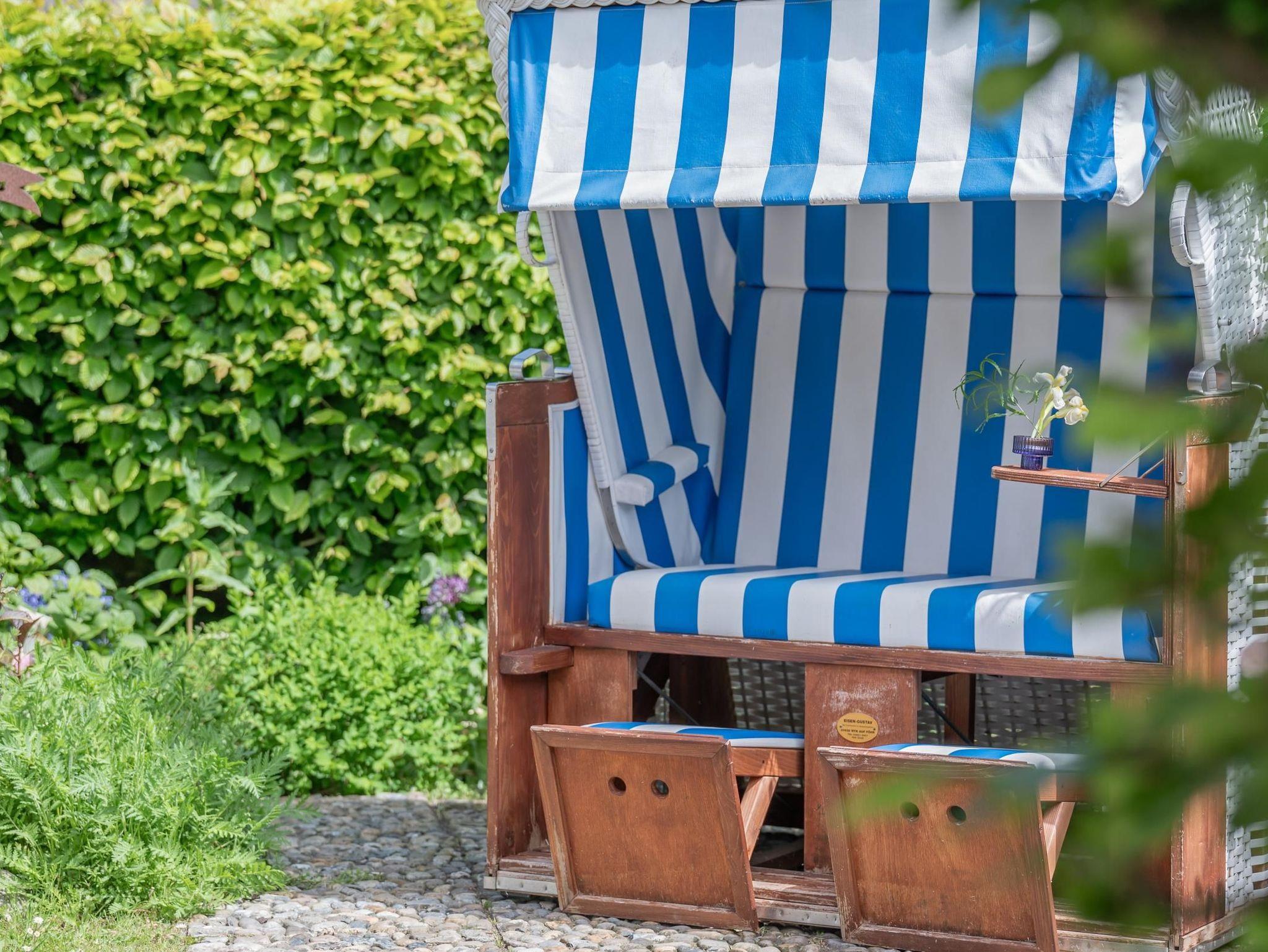 Außenbereich: Abstellmöglichk. f. Fahrräder, Garten, Gartenmöbel, Parkplatz, Strandkorb auf Terrasse, Terrasse.